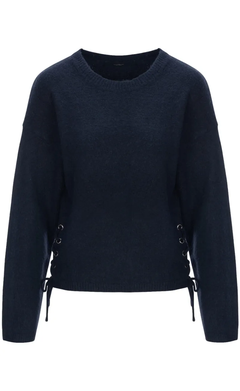 Smart striktrøje fra Luxzuz i en navy blå farve.