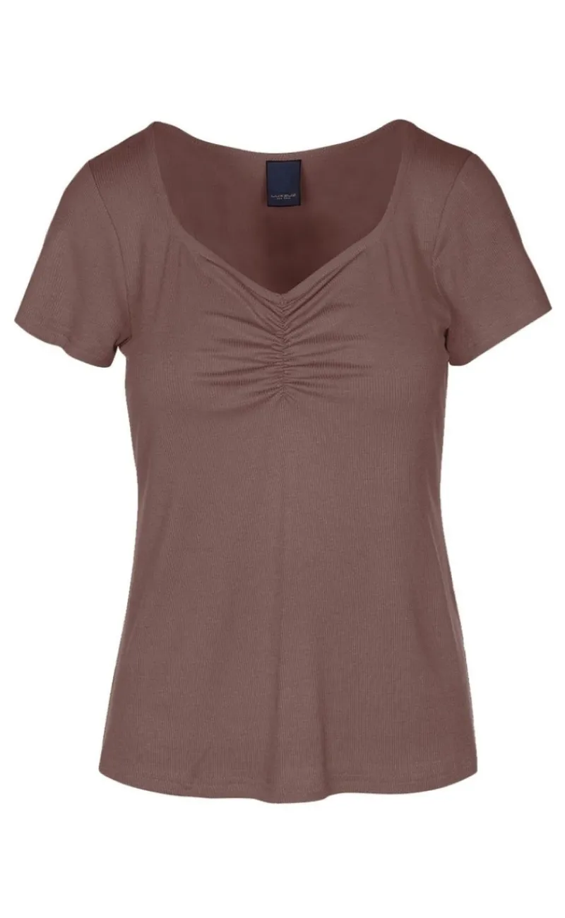 Sød t-shirt fra Luxzuz i en lysebrun farve i en ribbet kvalitet.