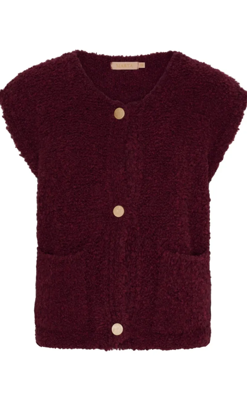 Blød vest fra Marta Du Chateau i en vinrød farve.