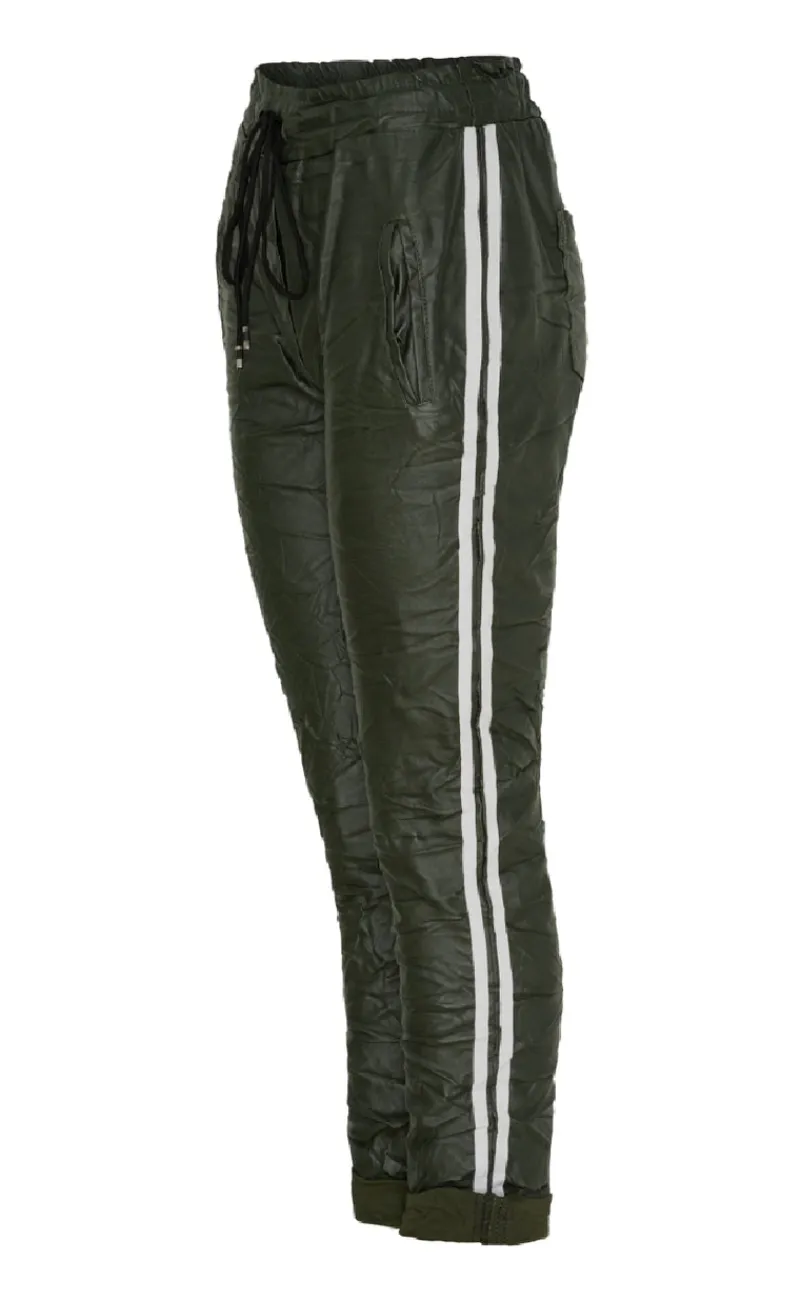 Fede og unikke bukser fra Marta Du Chateau i en khaki grøn farve, med en stribe ned langs siden.