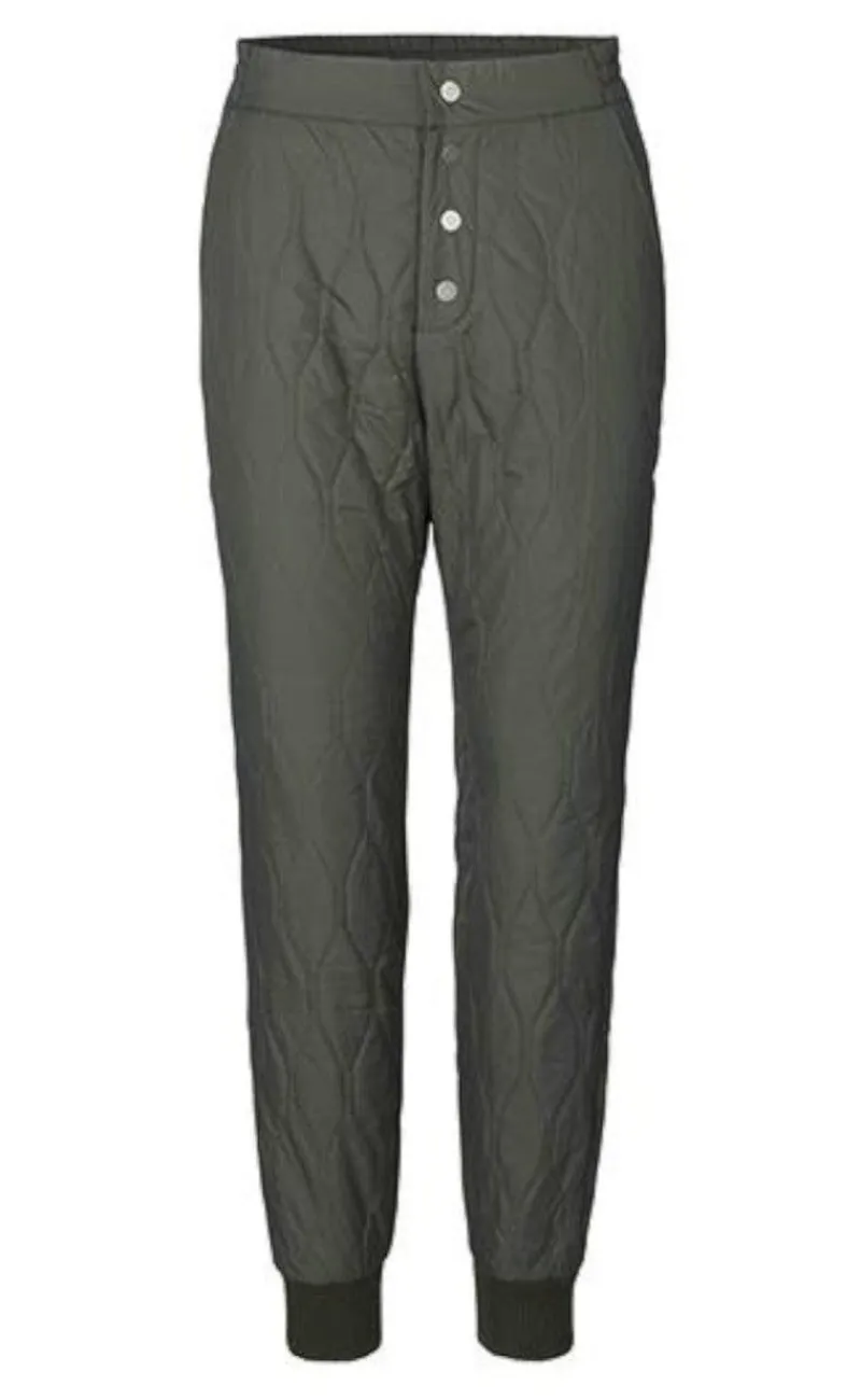 Bukserne er lavet i et lækkert quiltet materiale, har knappelukning, sidelommer og elastik forneden.