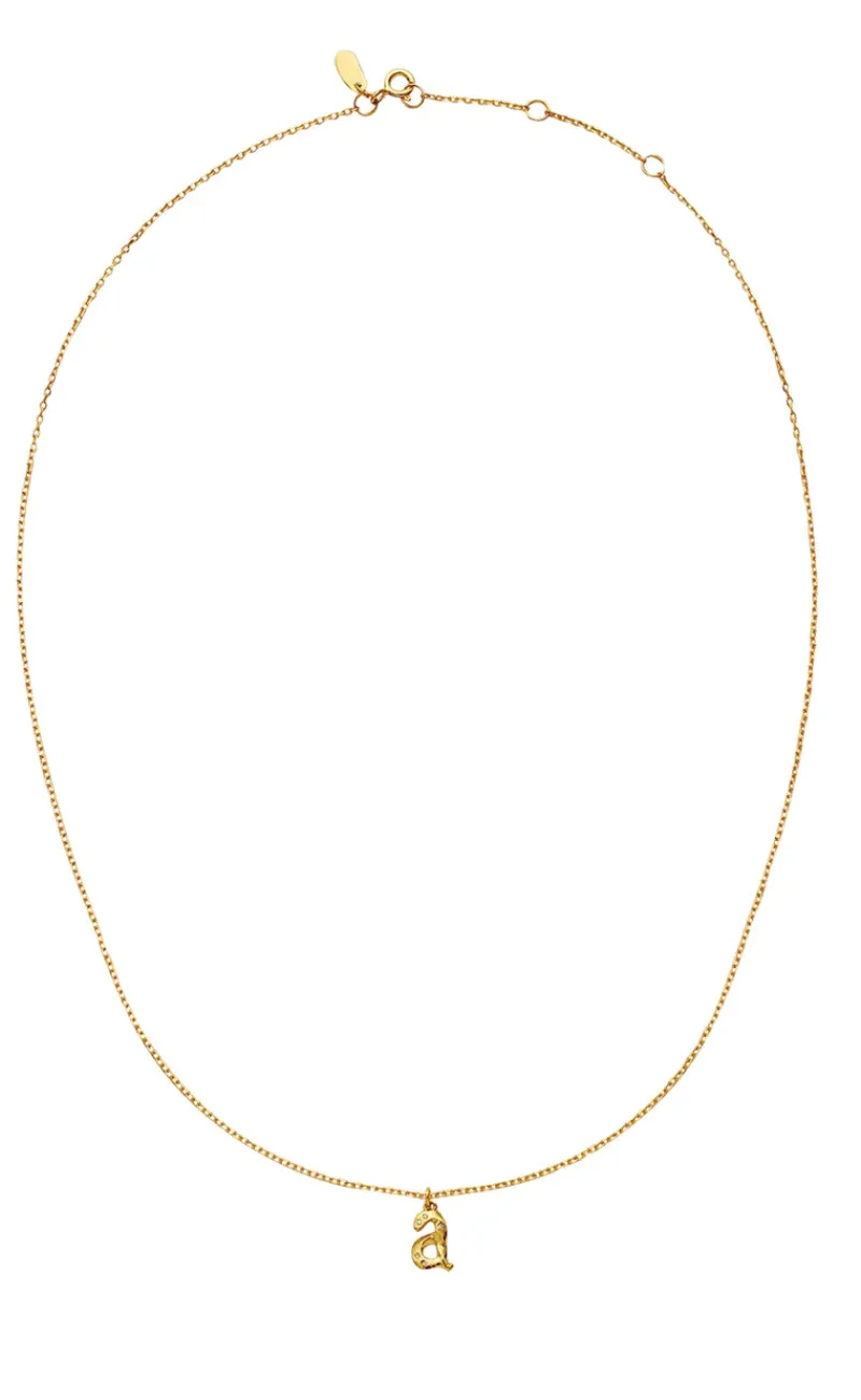 Halskæden har en flot vedhæng med bogstavet A.