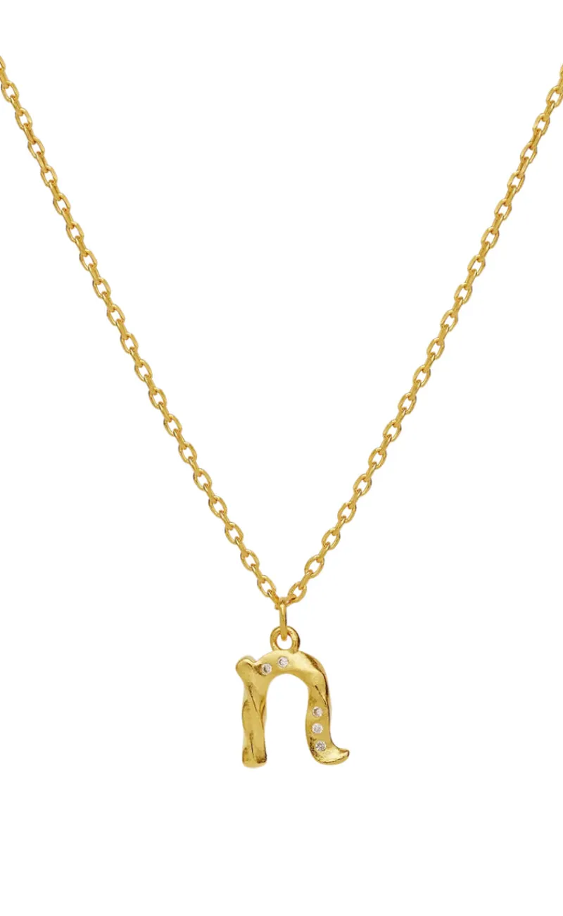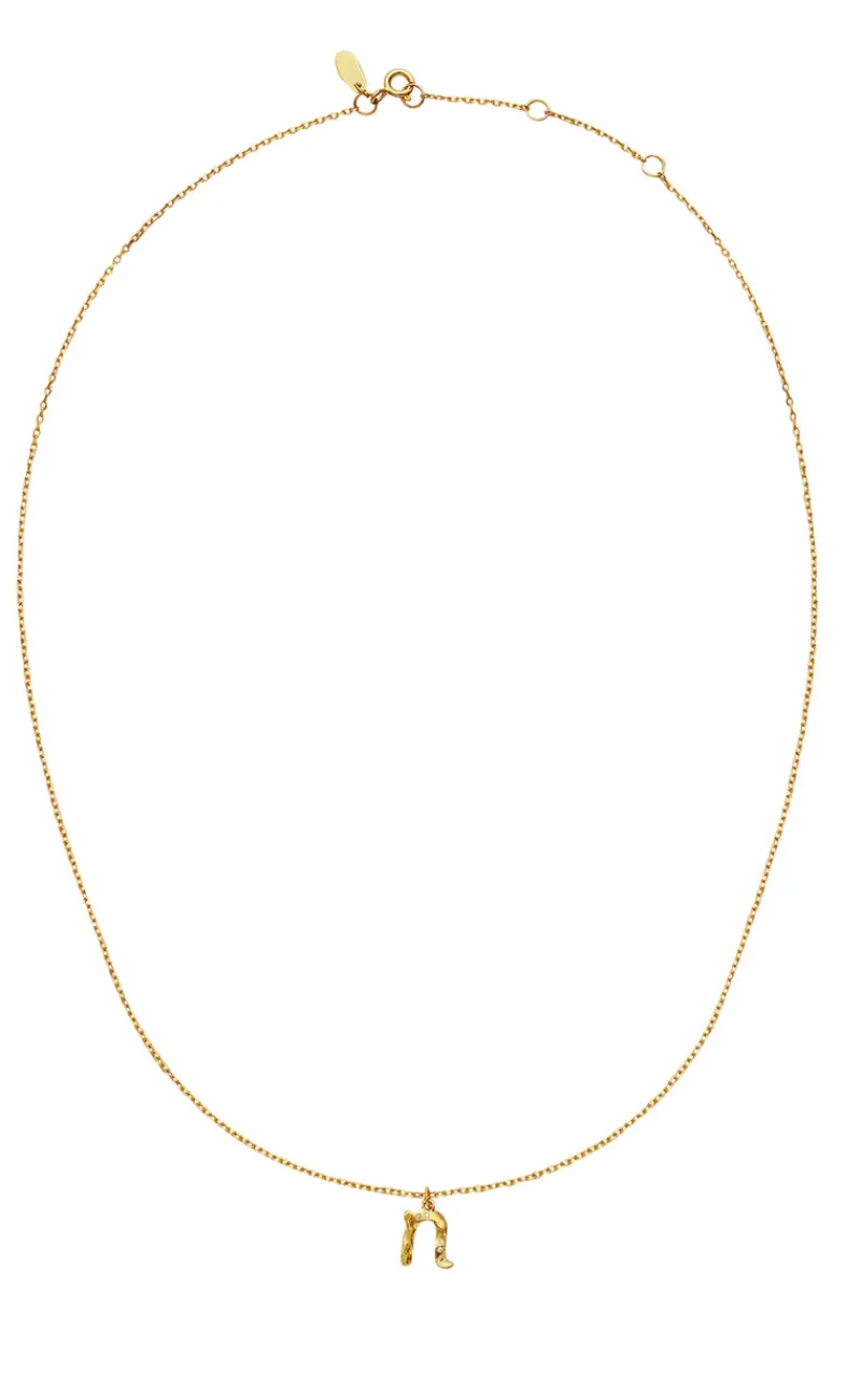 Halskæden har en flot vedhæng med bogstavet N.