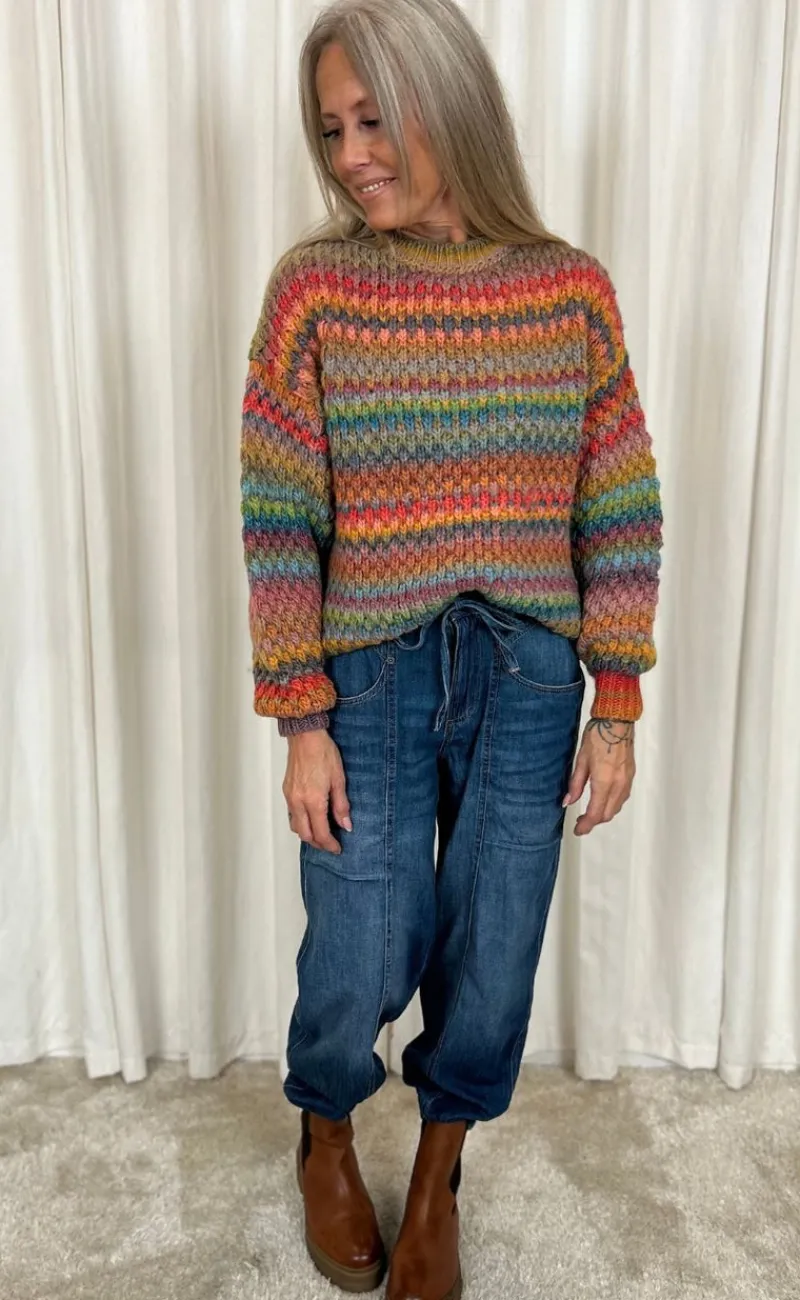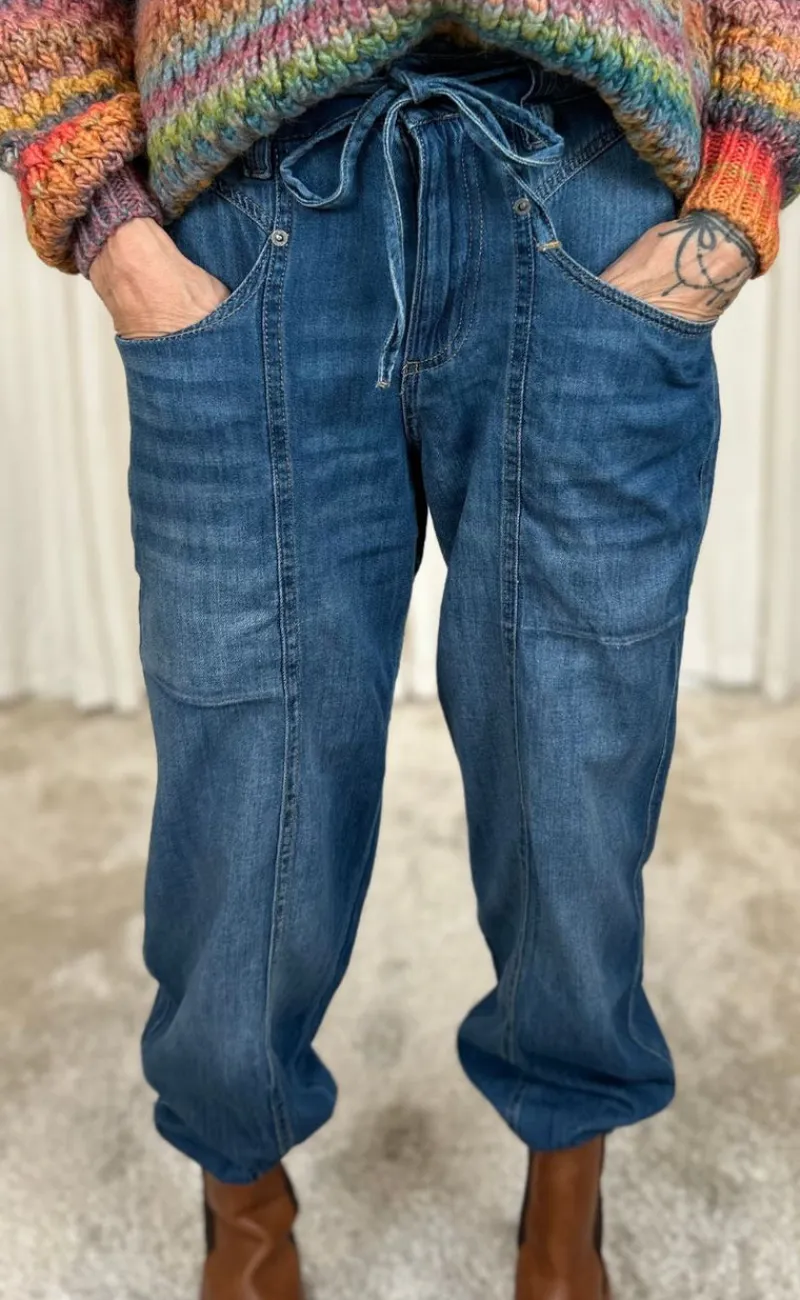 Lækre jeans i en smuk dyb blå farve og med en bindebånd i taljen.