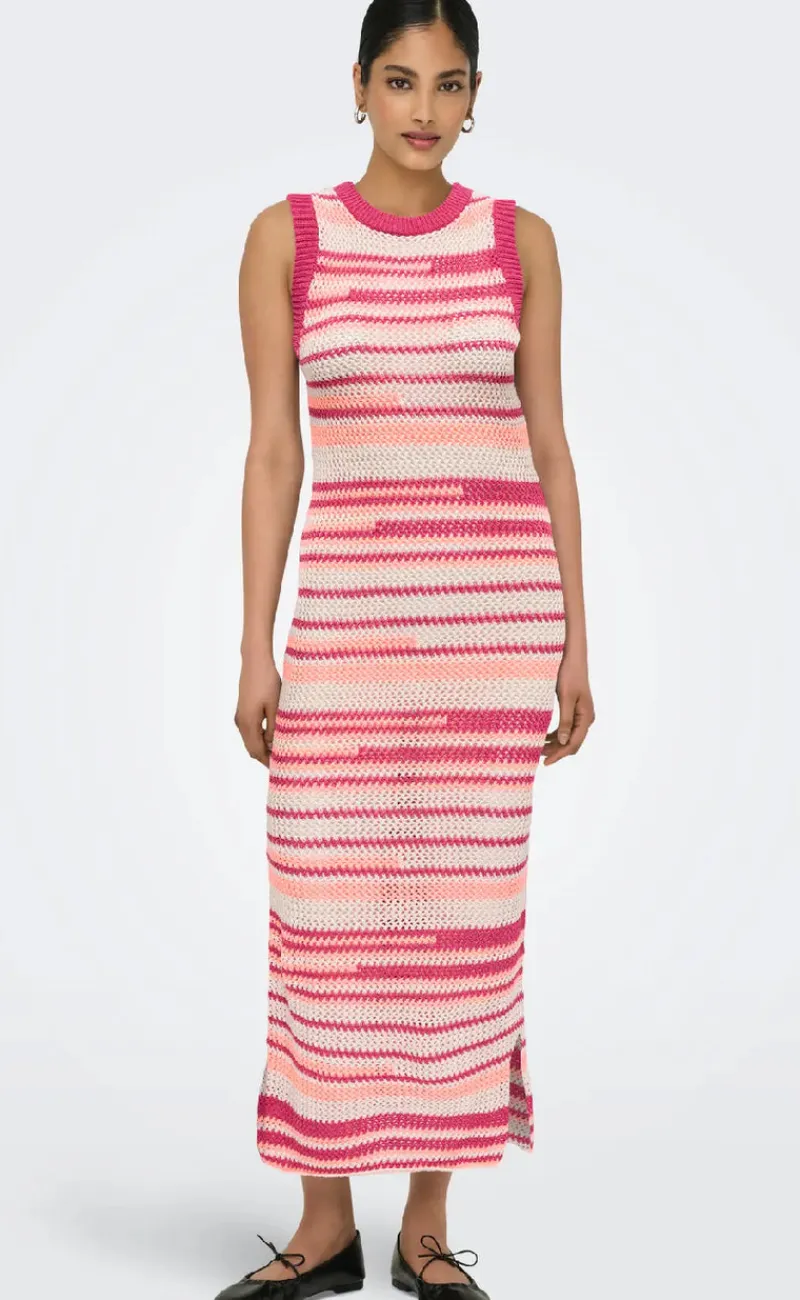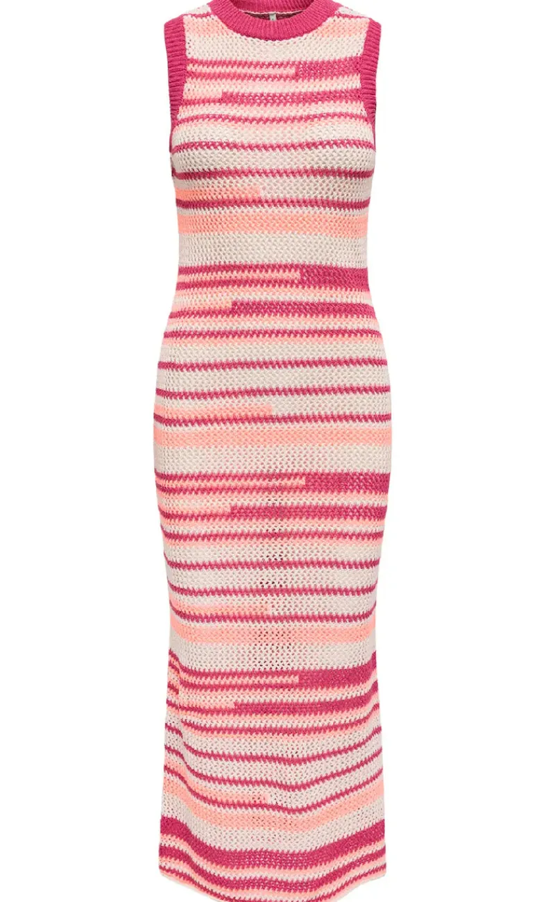 Maxi strik kjole fra ONLY i et stribet print og med et tætsiddende fit.