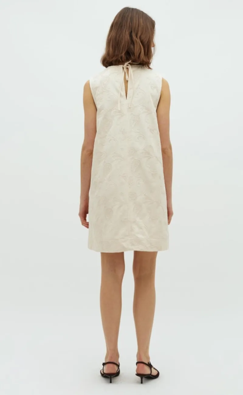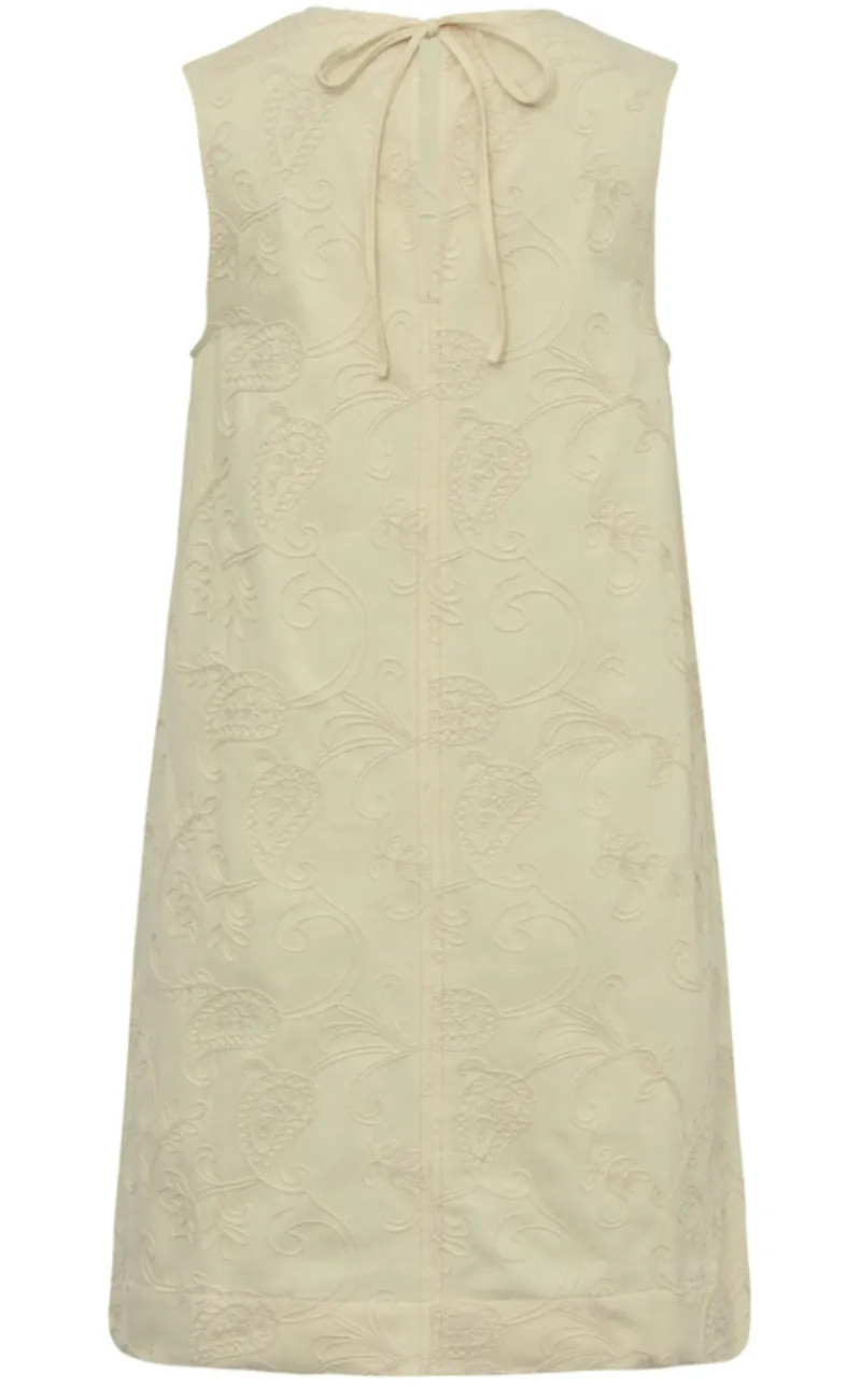 Kjolen har ingen ærmer og en smukt broderi mønster.
