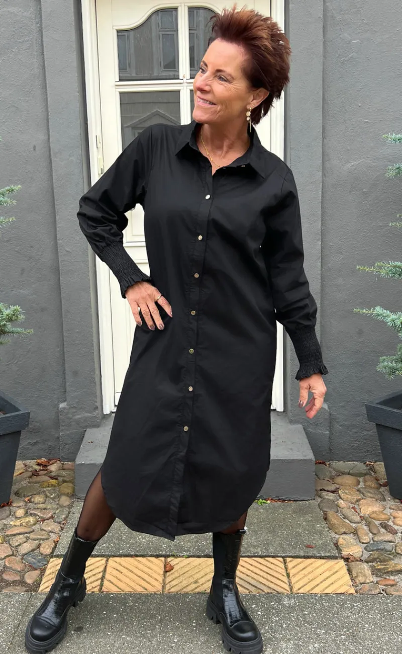 Smuk skjortekjole fra INA Copenhagen i sort.