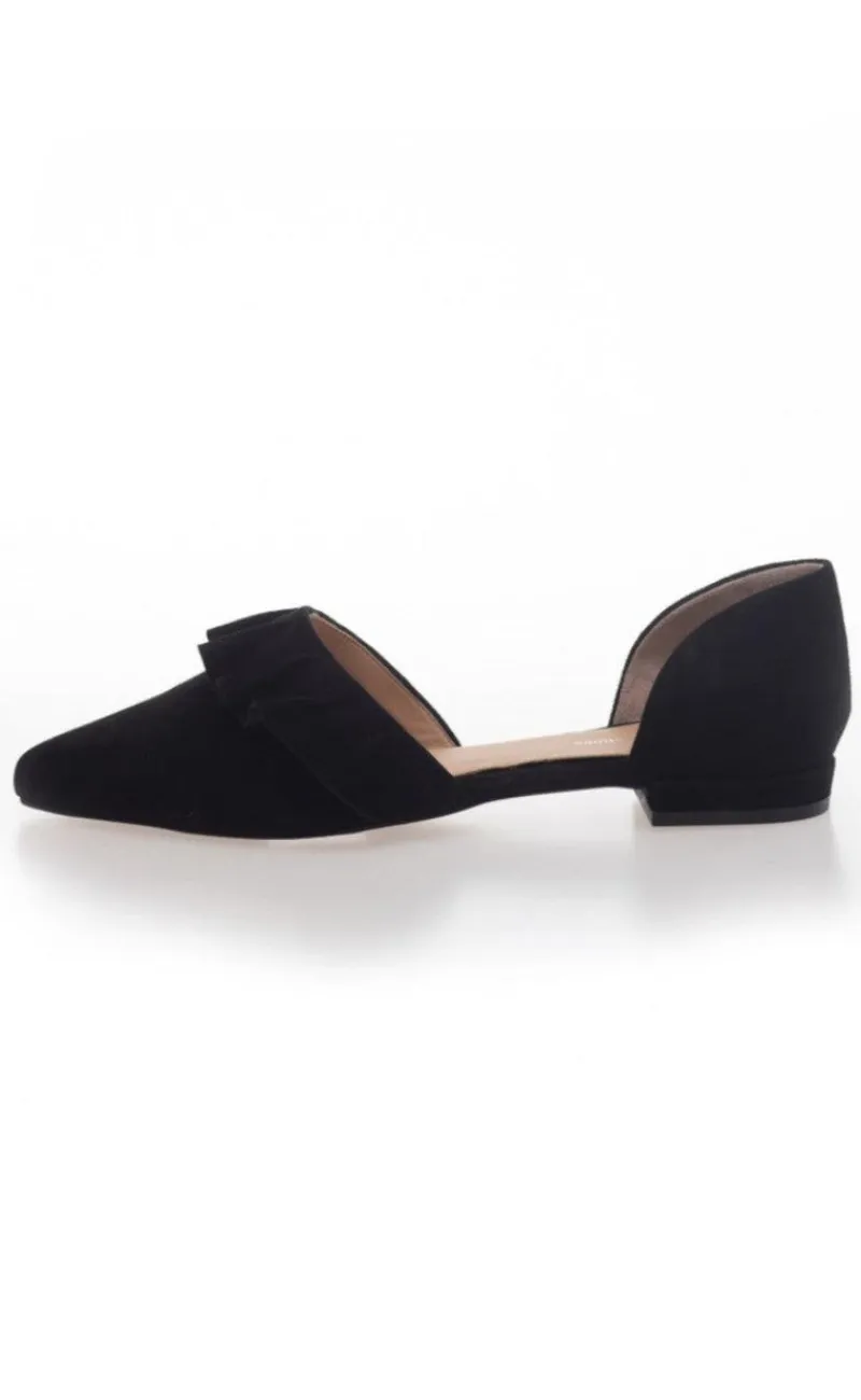 Skoene har en spids snudesløje og fine flæsedetaljer.