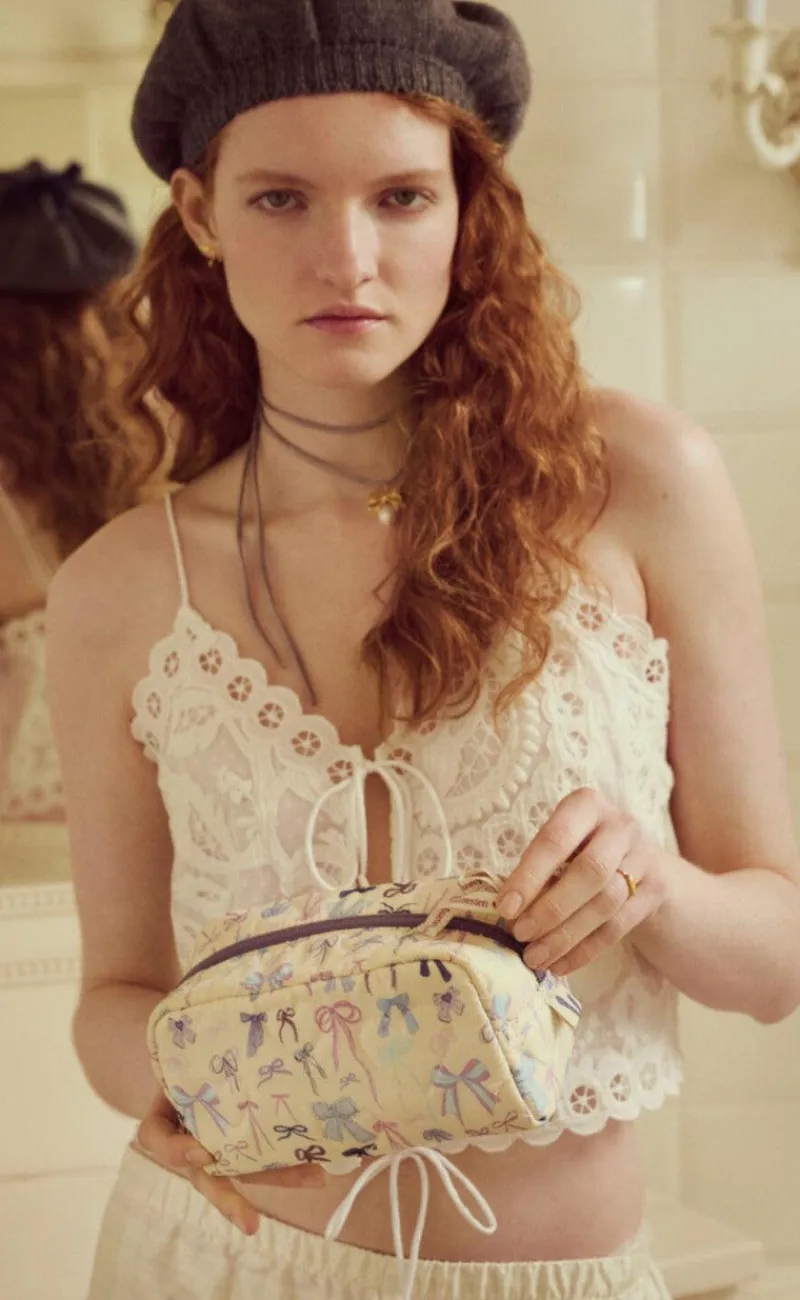 Sød makeup taske fra Maanesten i et unikt print med sløjfer.