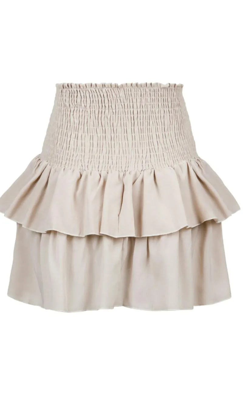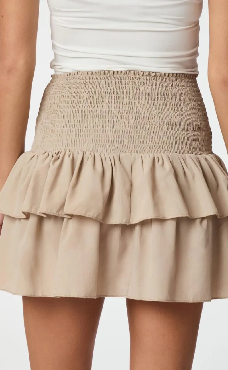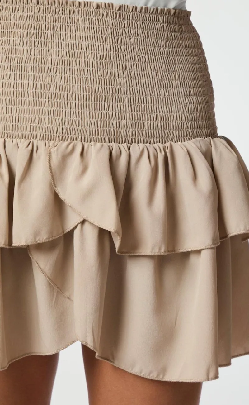 Denne nederdel er kort, med elastik i tajlen og flæser.