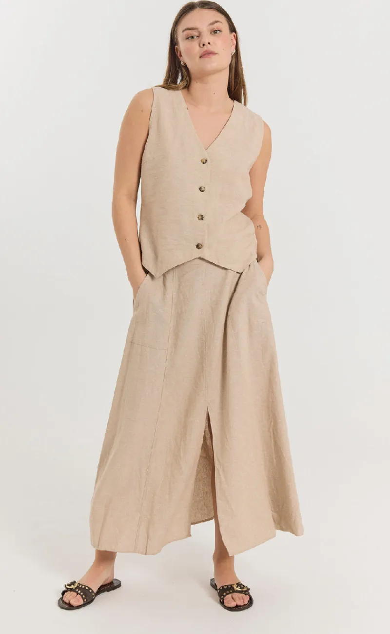 Maxi, hør nederdel fra Freequent i en flot sand farve.