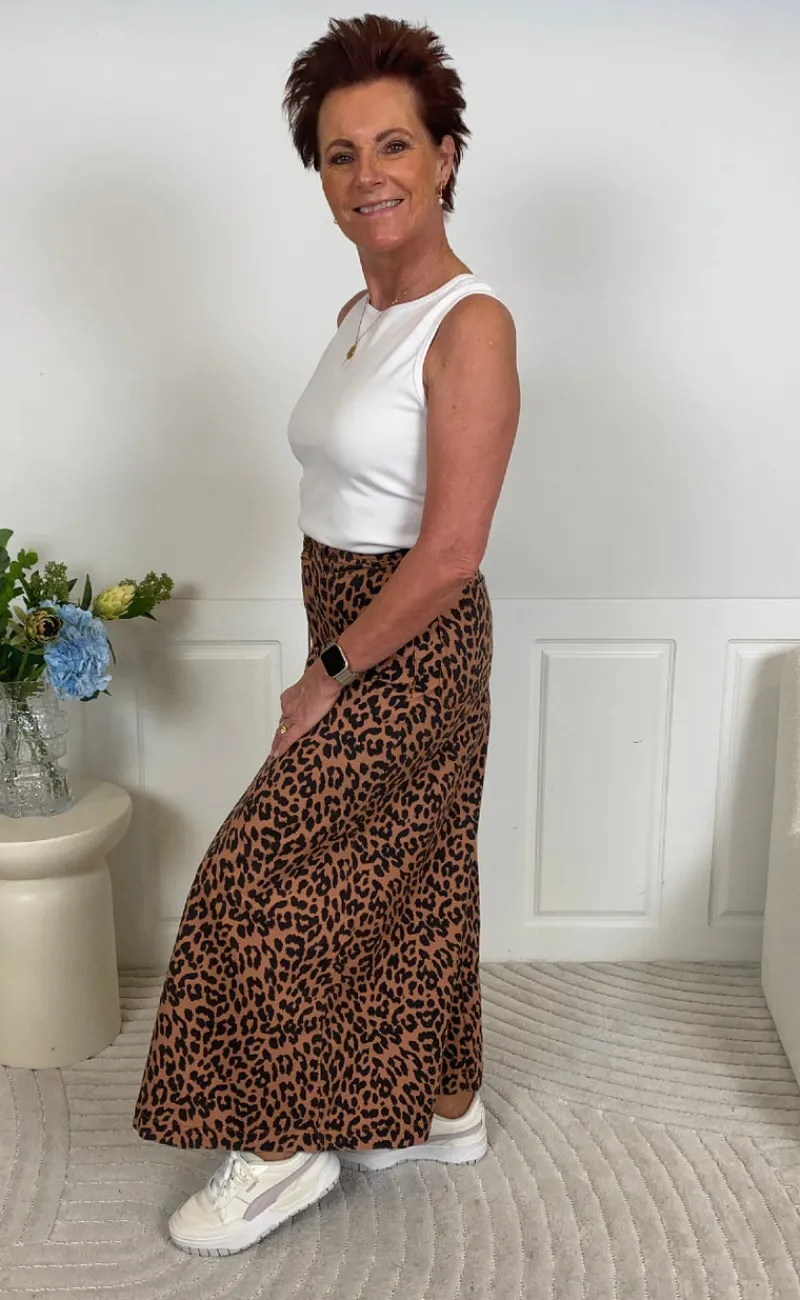 Leopard nederdel fra Lollys Laundy i en maxi længde.