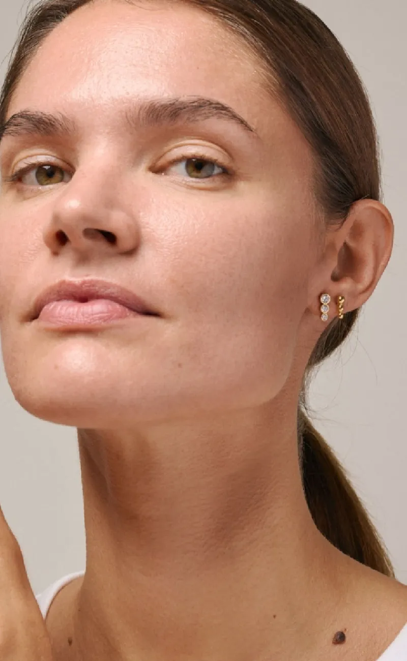Fine ørestikkere fra ENAMEL Copenhagen, i guld formet som tre fine sten.