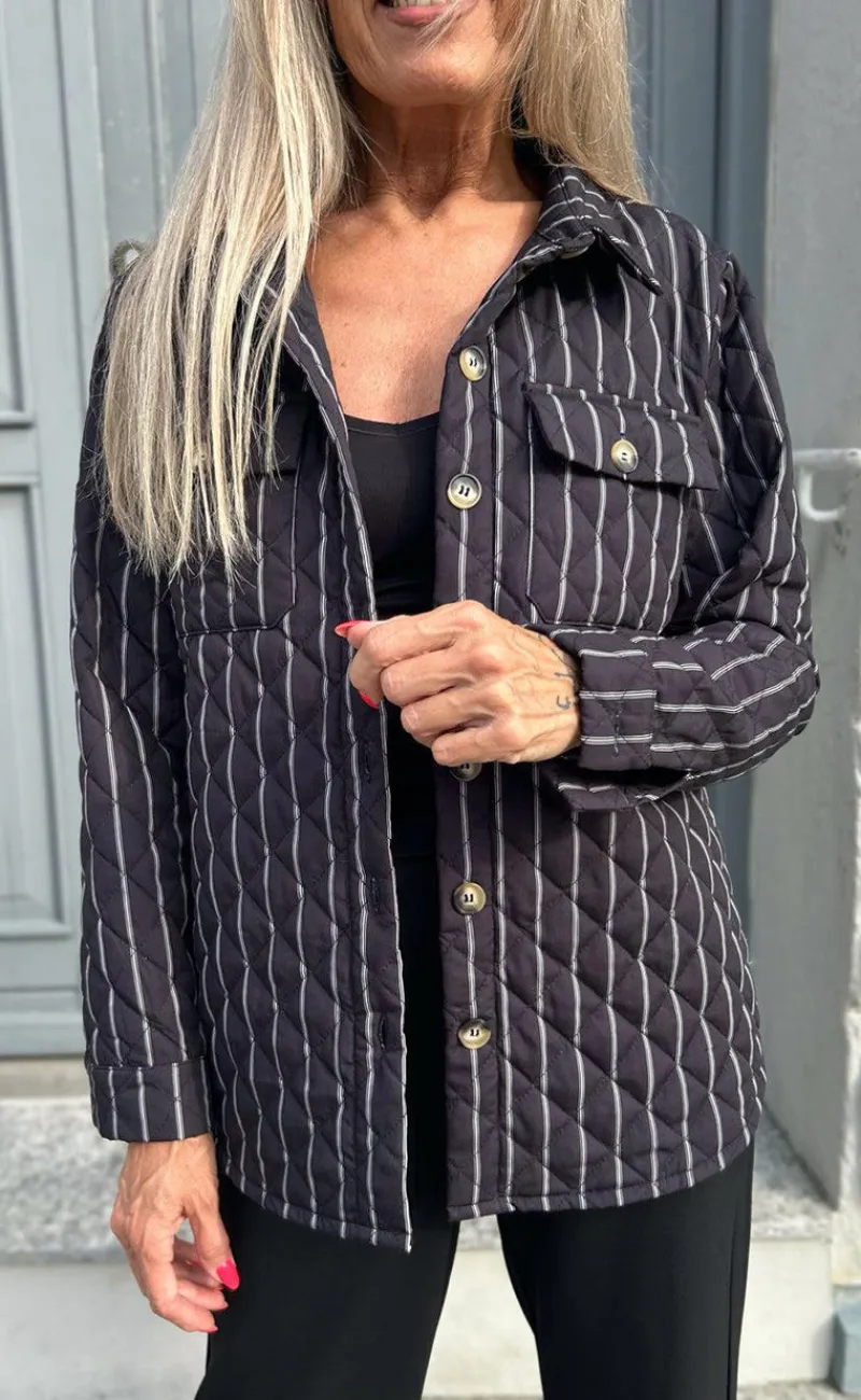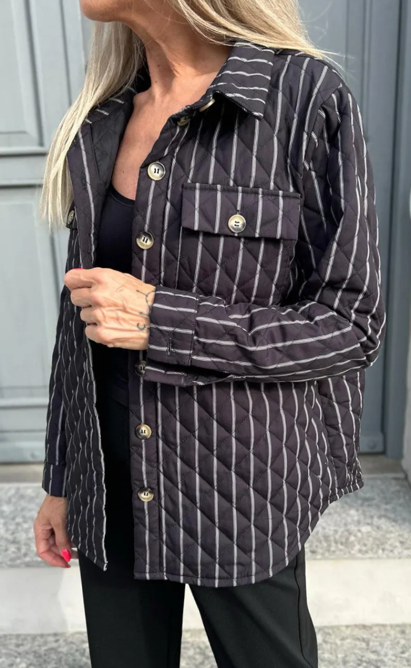 Smart jakke fra INA Copenhagen i sort med hvide striber.
