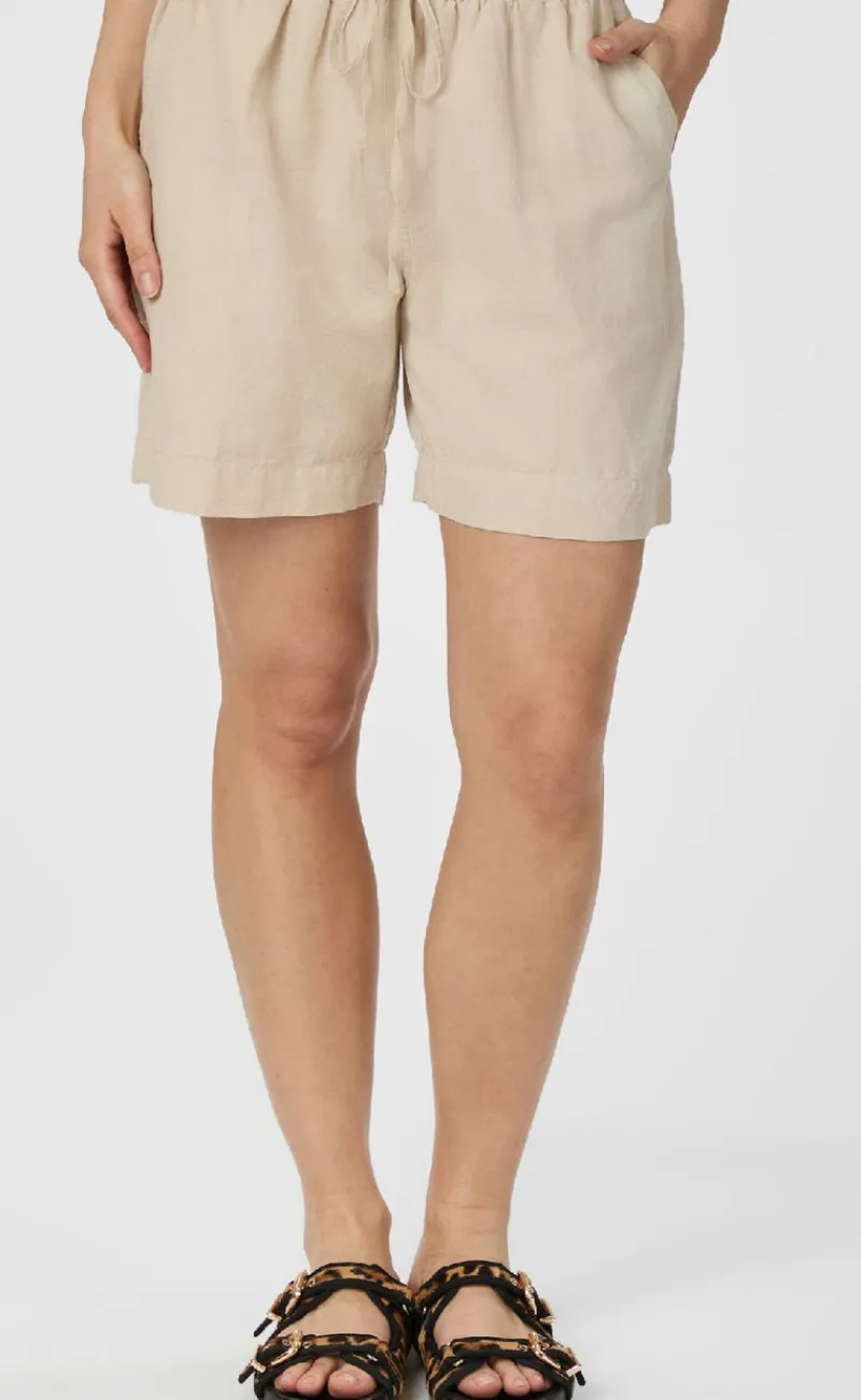 Dejlige og lækre shorts fra Neo Noir i beige, i hør-mix med elastik i taljen og lommer.