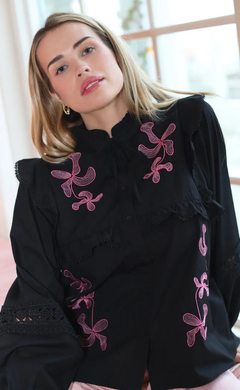 Lækker og unik skjorte fra Cras i sort, med lyserøde detaljer.
