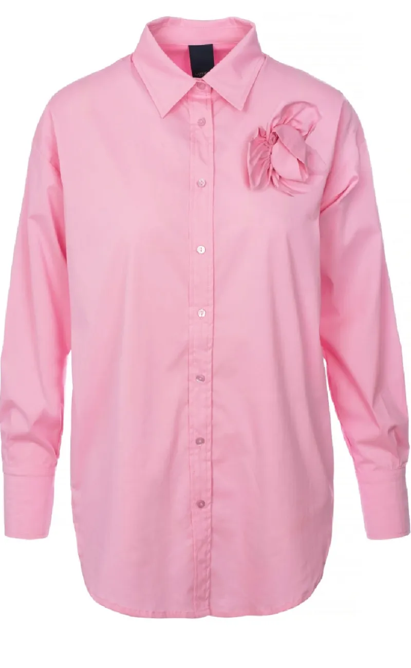 Cool skjorte fra Luxzuz i lyserød med en smuk aftagelig blomst ved skulderen.