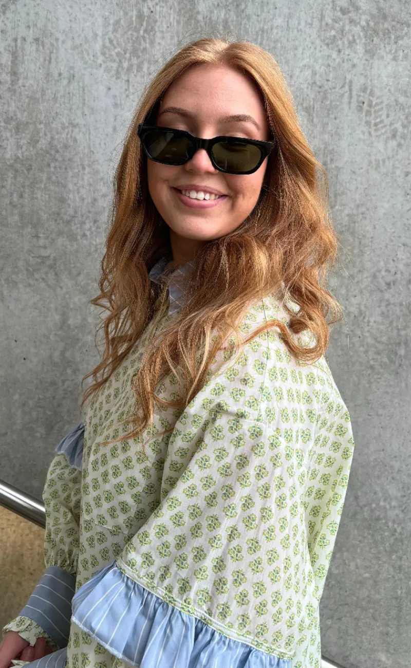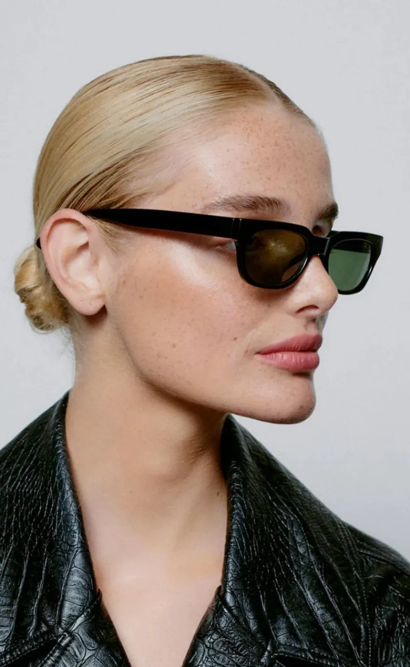 Disse solbriller har et smalt ovalt glas, og er perfekte til at pifte et outfit op!