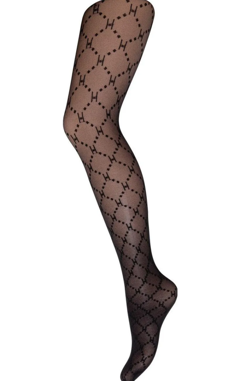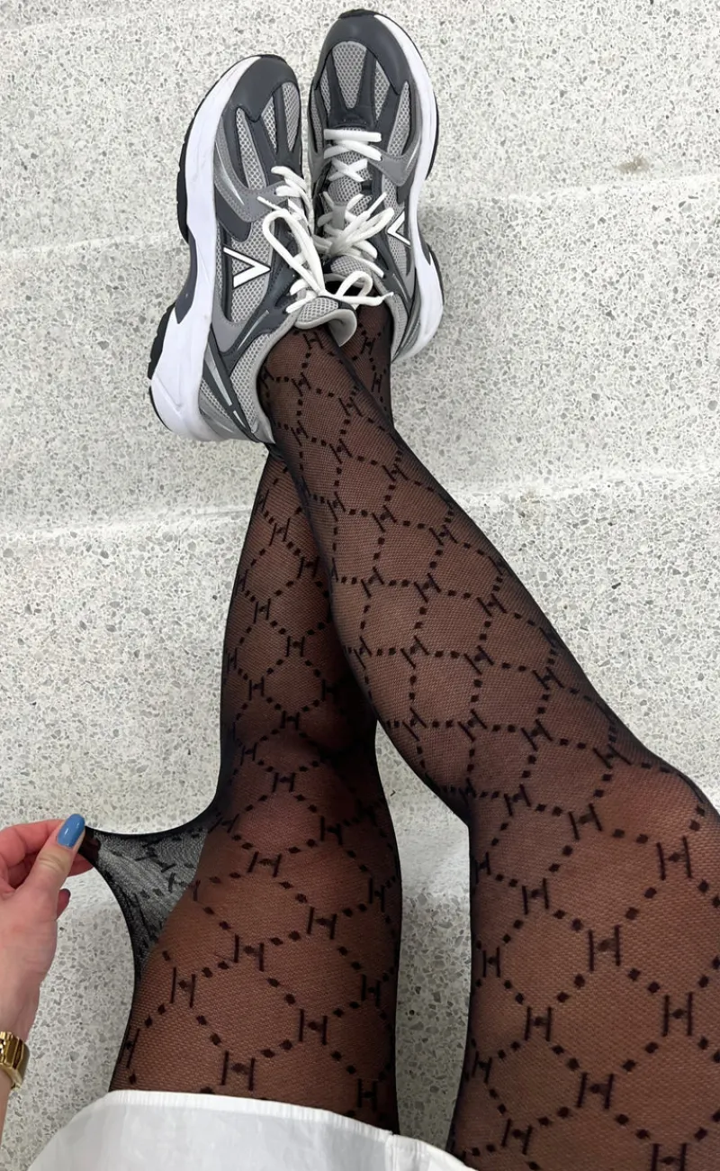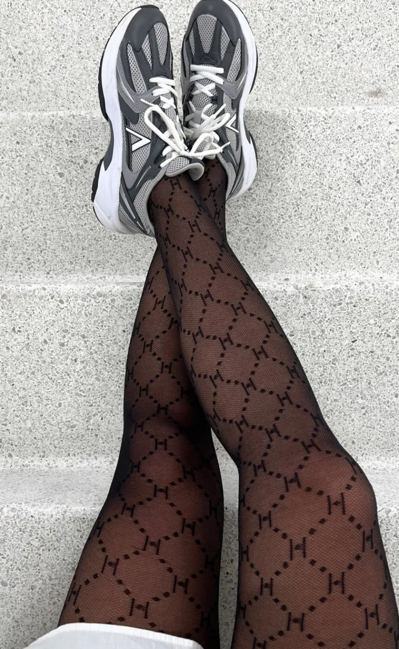 Fine strømpebukser med et sort mønster.