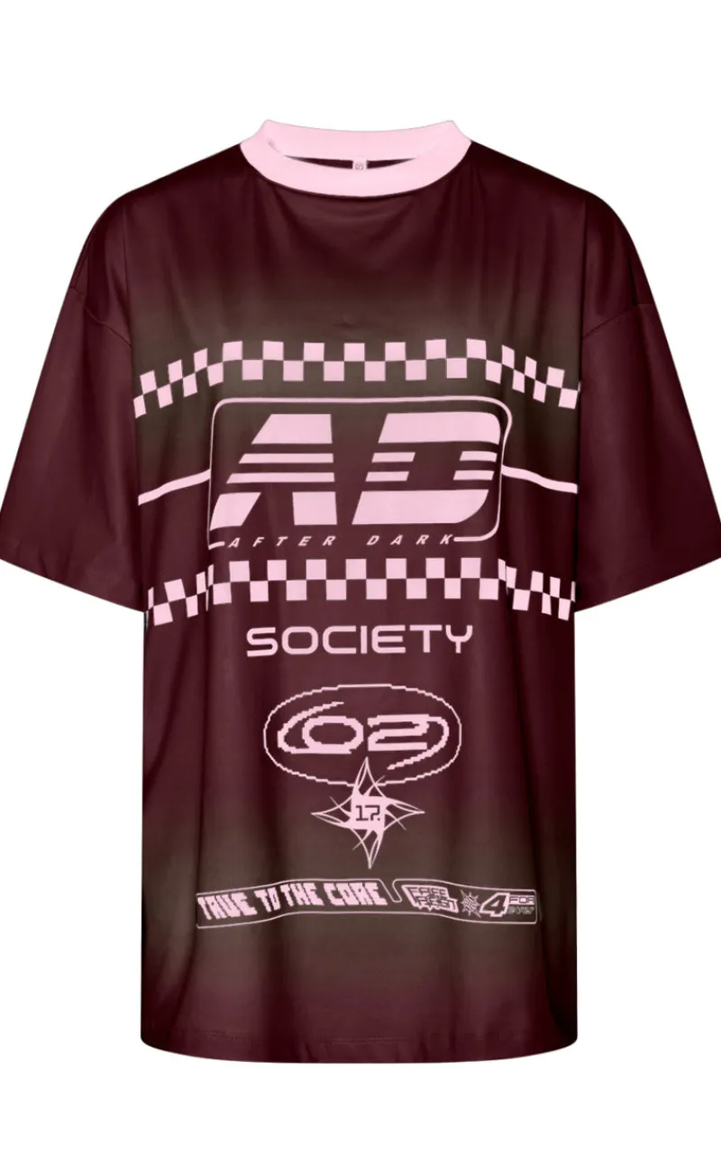 Flot t-shirt fra Pieces med et sporty look, i flotte lyserøde og vin røde farver.