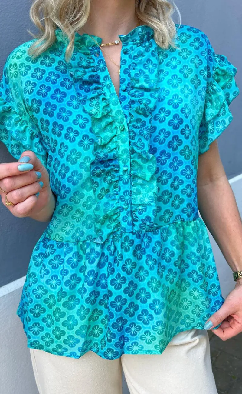 Nydelig top fra INA Copenhagen i blå nuancer.