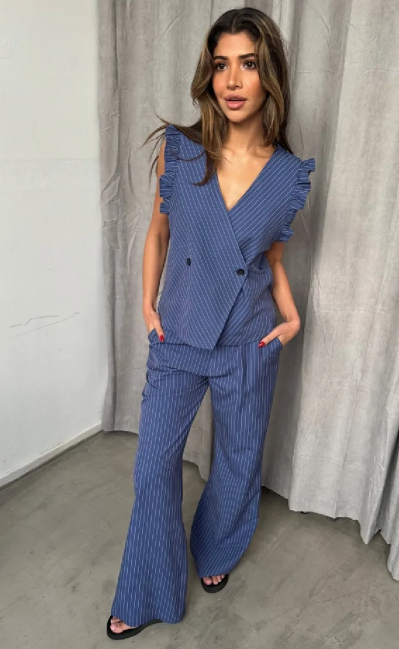 Stribet vest fra Continue i blå og hvid, med fine detaljer.