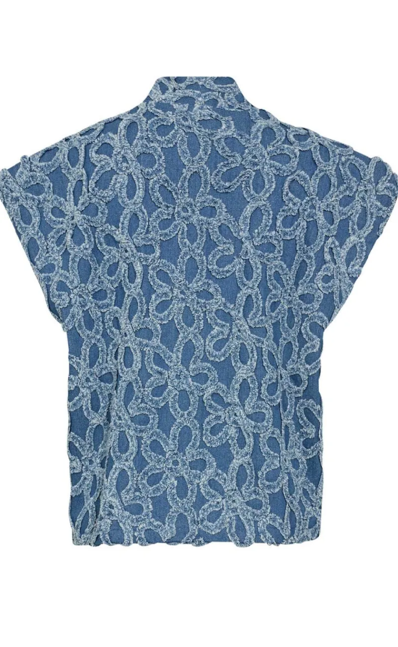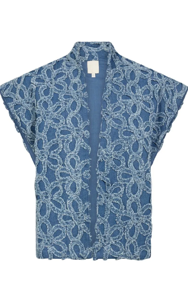 Fin denim vest fra Gossia i blå med et sødt mønster.