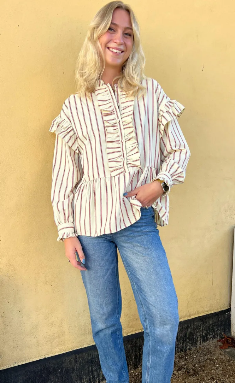 Frida blusen har en overskæring omkring taljen hvilket sikrer en perfekt pasform.