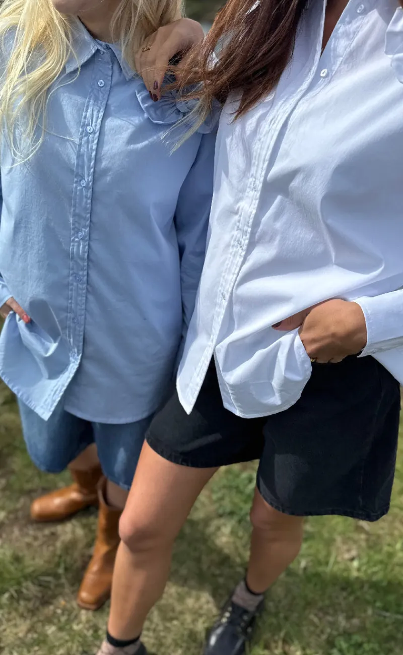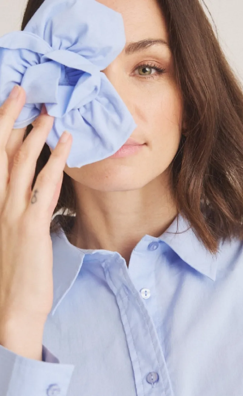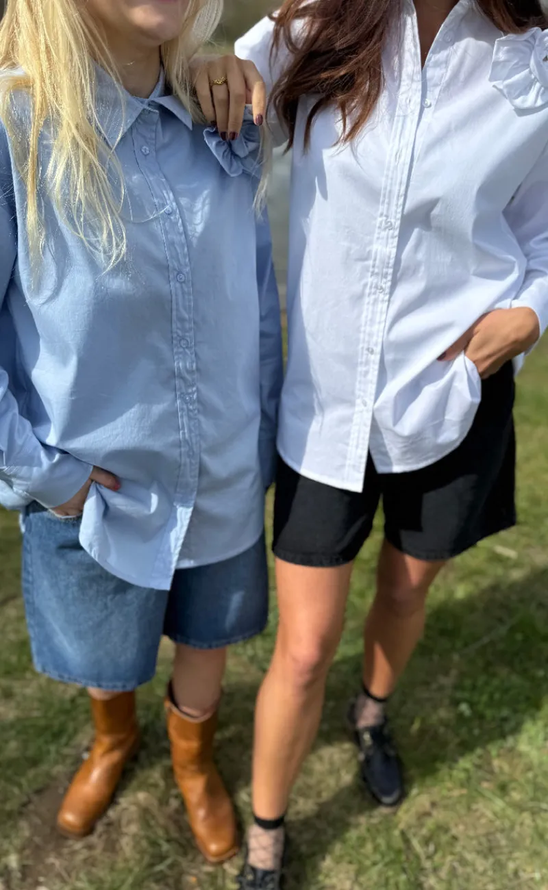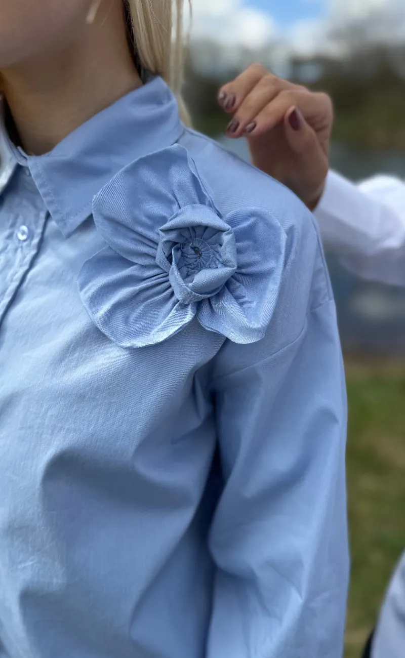 Cool skjorte fra Luxzuz i blå med en smuk aftagelig blomst ved skulderen.
