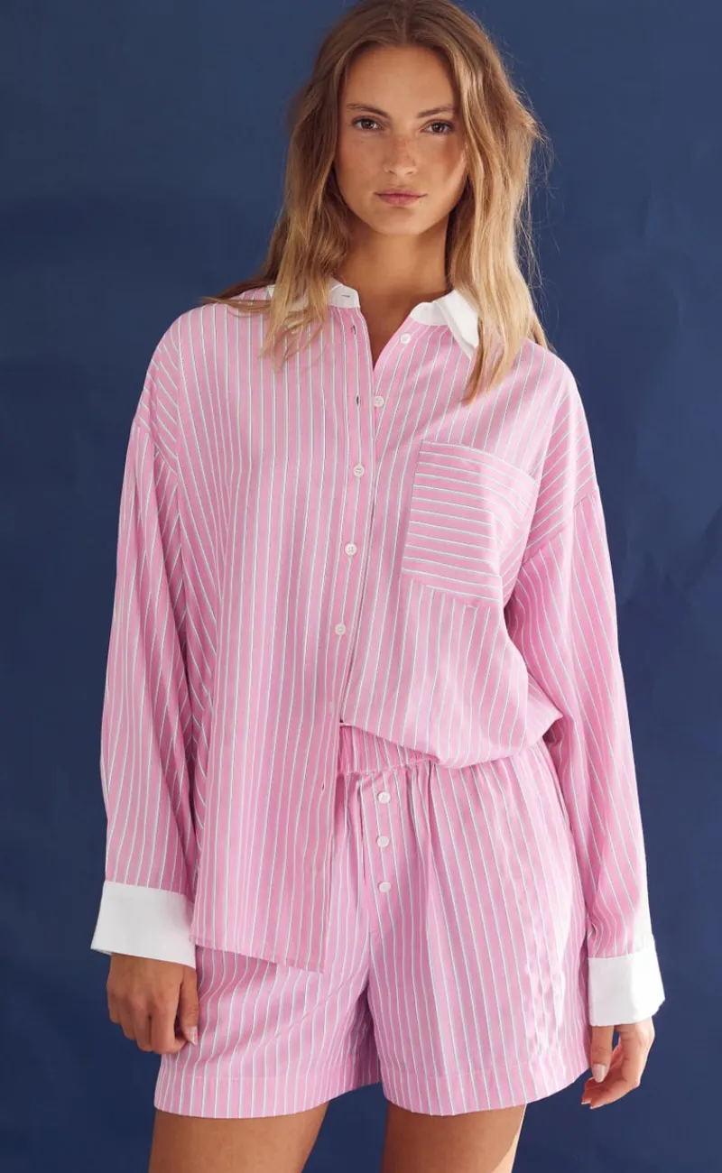 Smuk, stribet skjorte fra Noella i lyserøde nuancer.