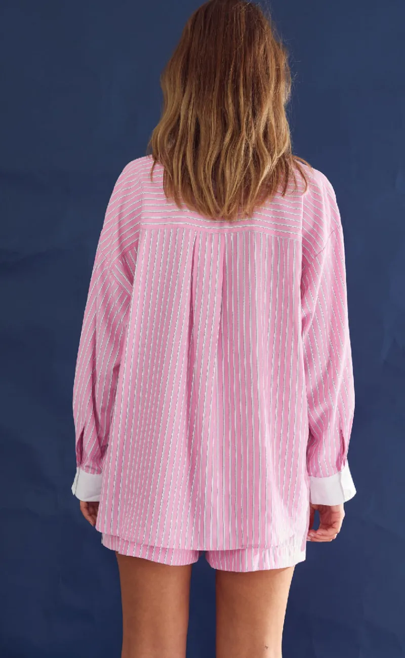 Skjorten har et oversize fit og kan med fordel styles med matchende shorts.