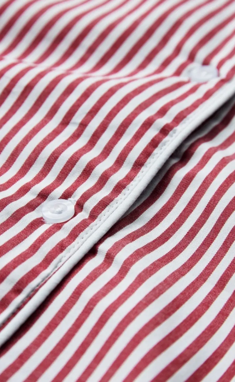 Denne skjorte har korte ærmer, knapper samt en krave.