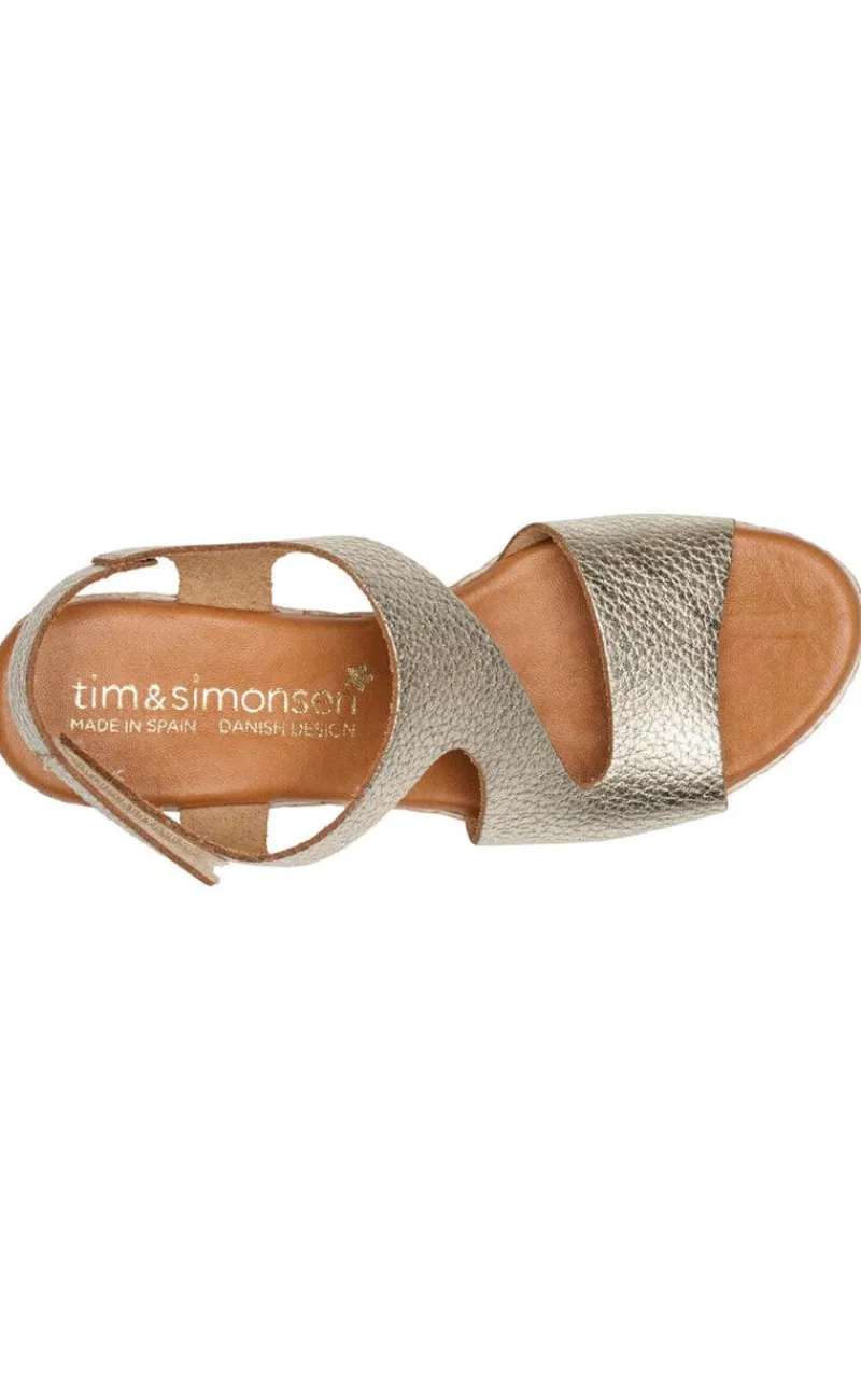 Flotte sandaler fra Tim & Simonsen i guld med en blød gummisål i memory skum, så de er virkelig gode og behagelige at gå i.