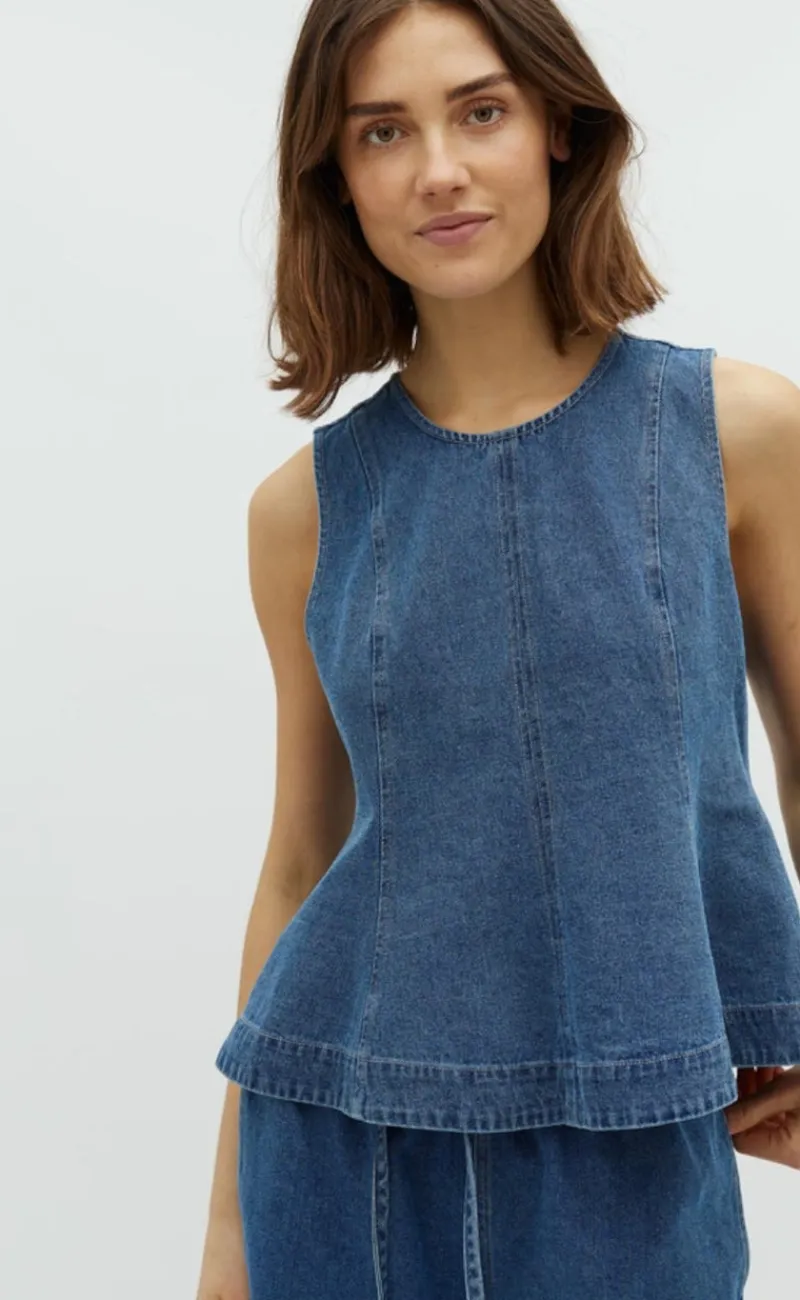 Toppen har ingen ærmer med en lynlås i ryggen.