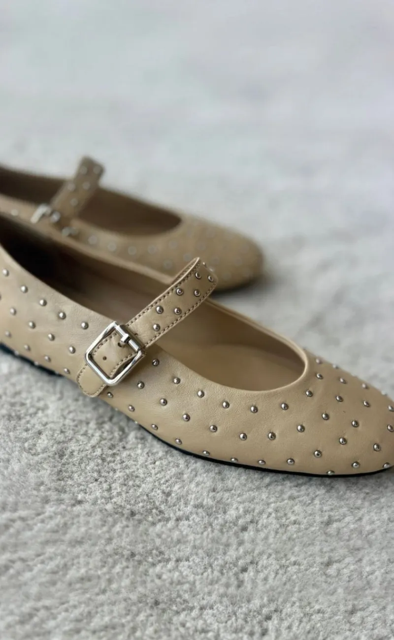 Smukke og yndige ballerinaer fra Copenhagen Shoes i beige med sølv sten.