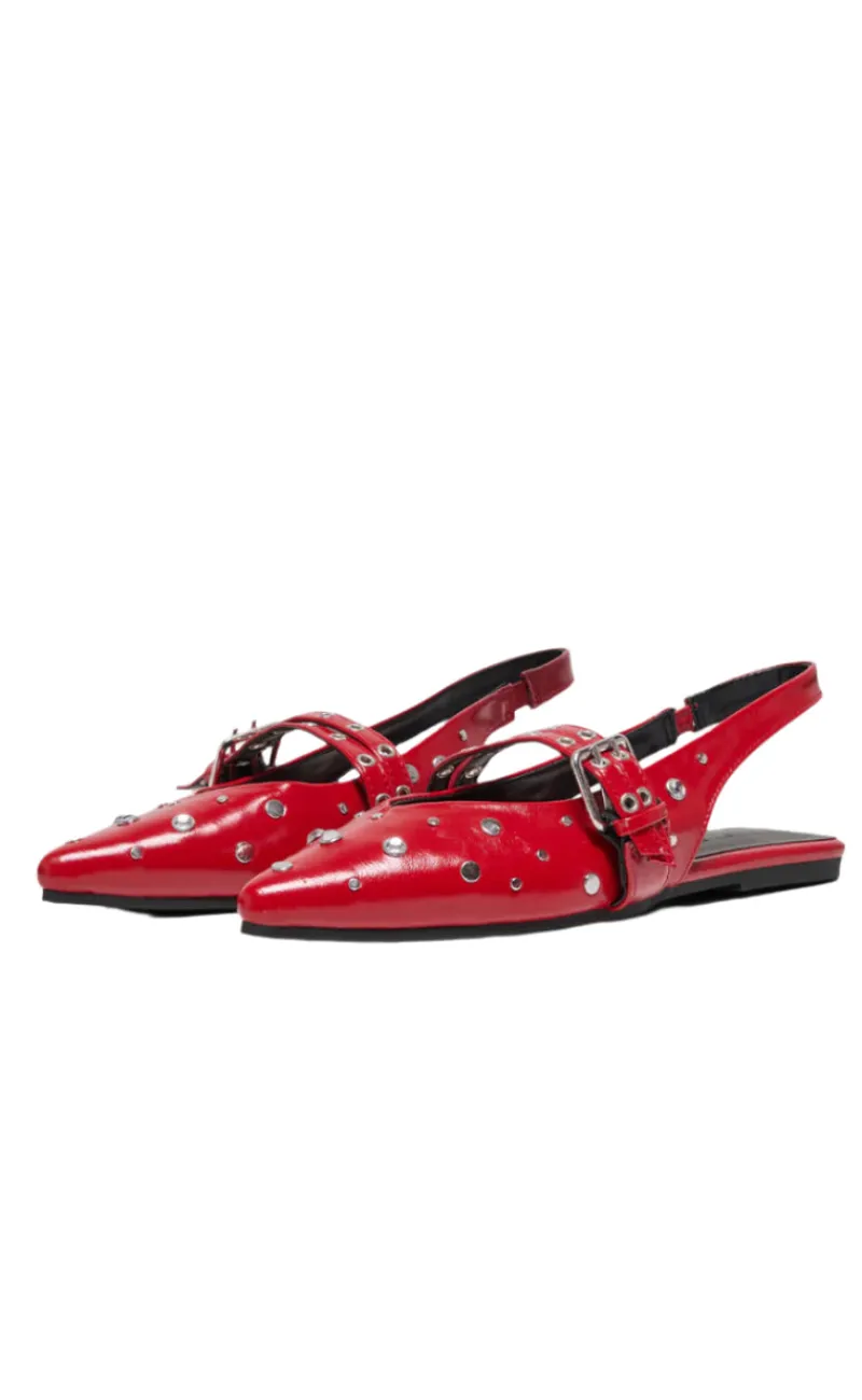 Stilrene ballerinaer fra Only i en skarp rød farve.