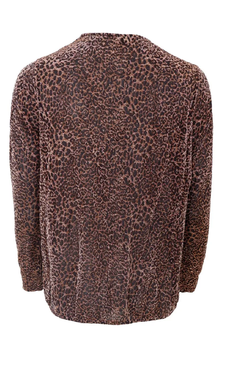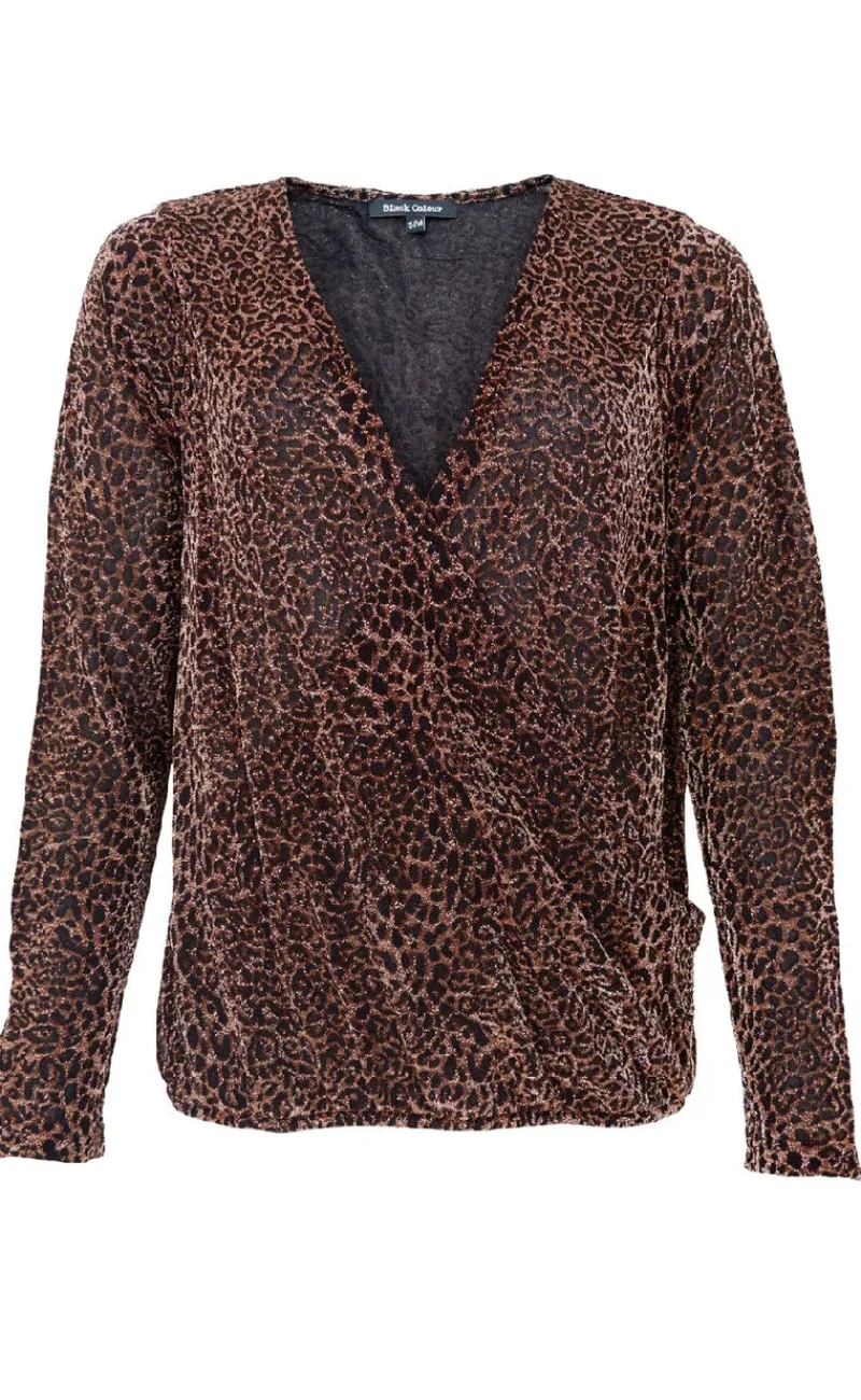 Wrap bluse med balloon effekt forneden, fra Black Colour i et skinnende leopard-lurex print.
