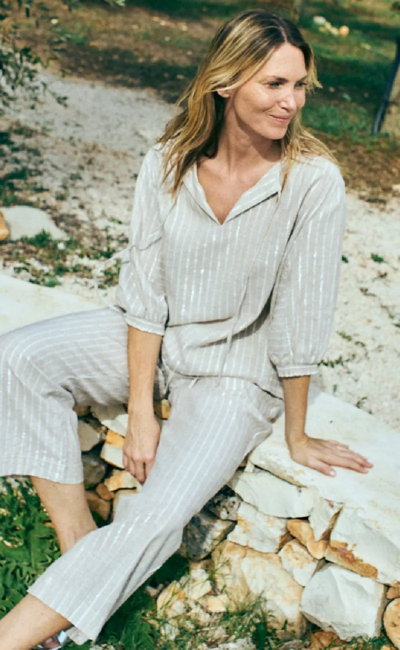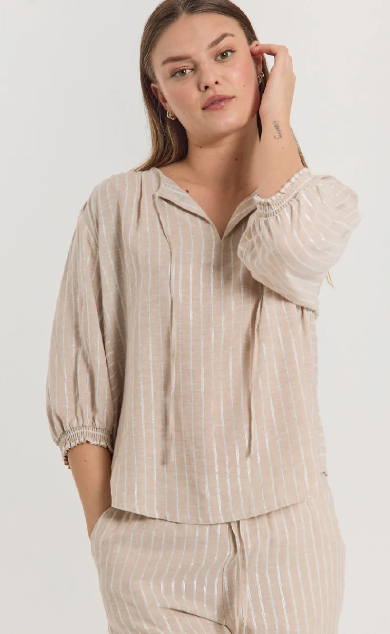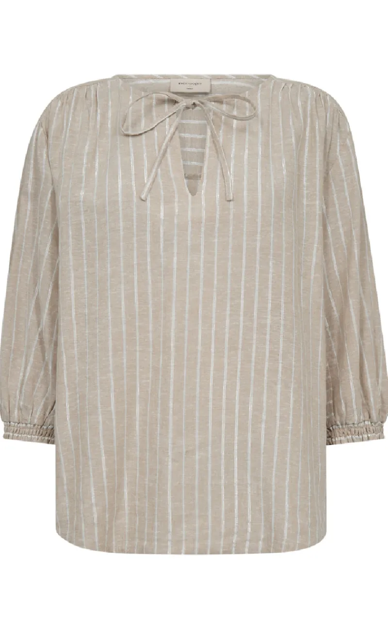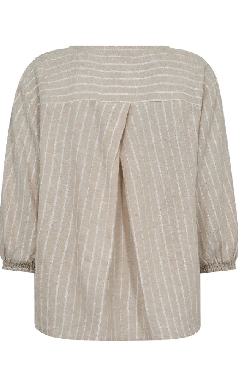 Sød bluse fra Freequent i et beige og hvid stribet print.