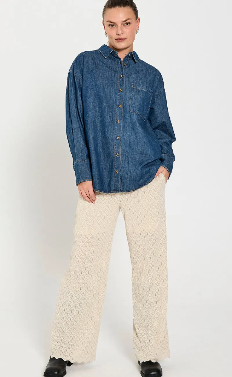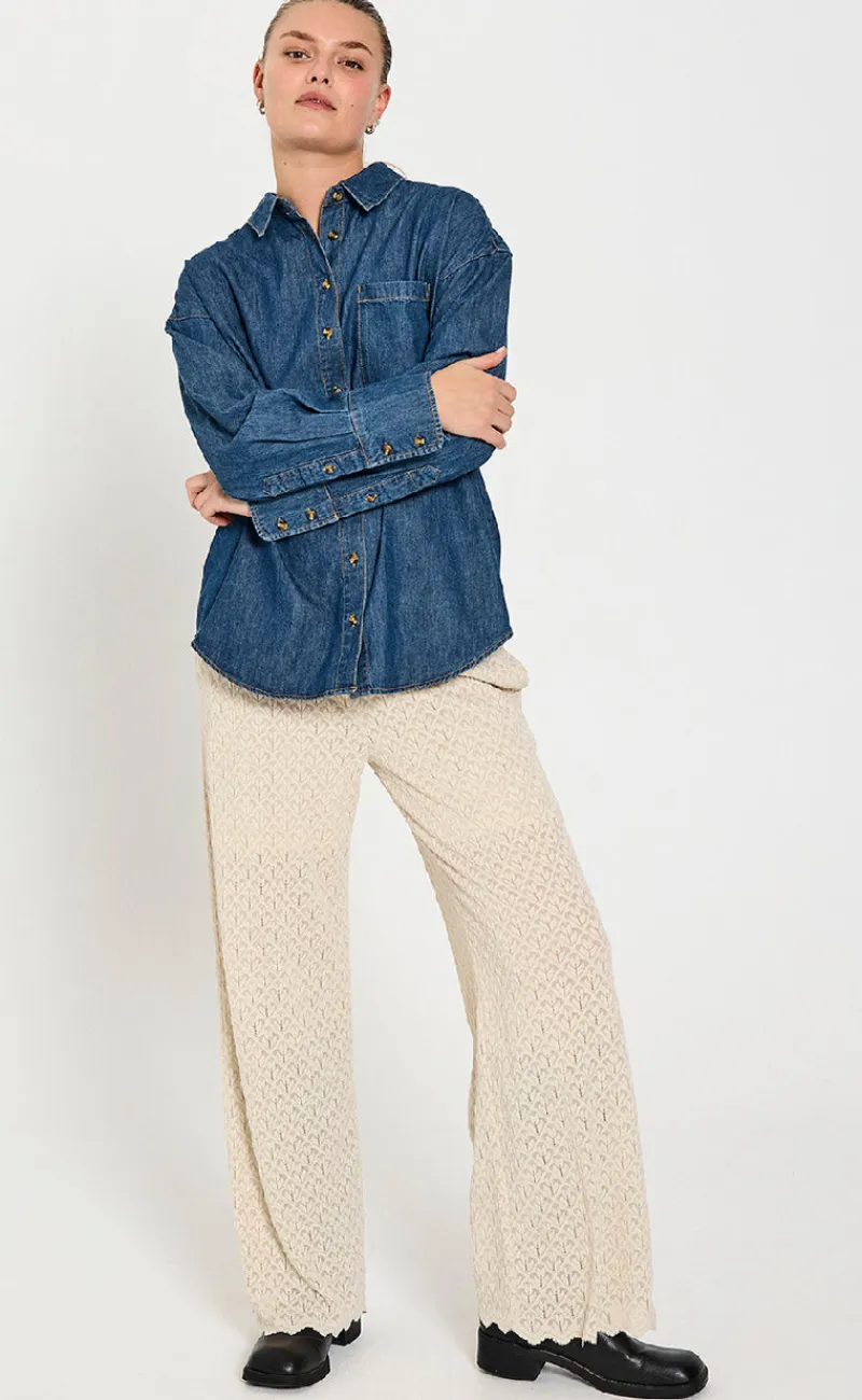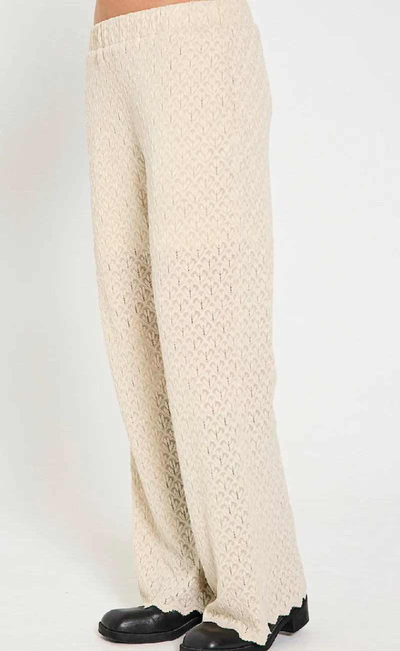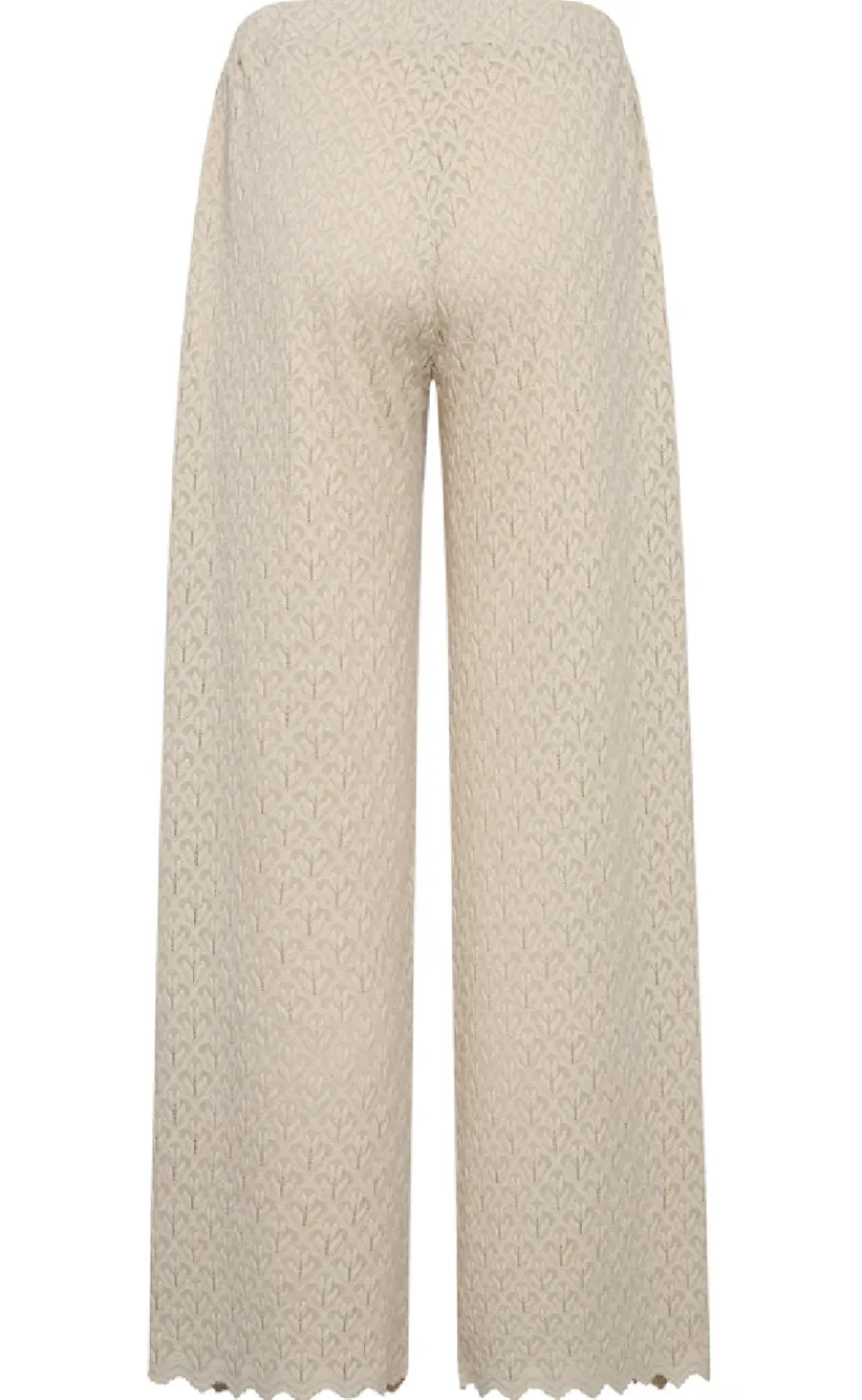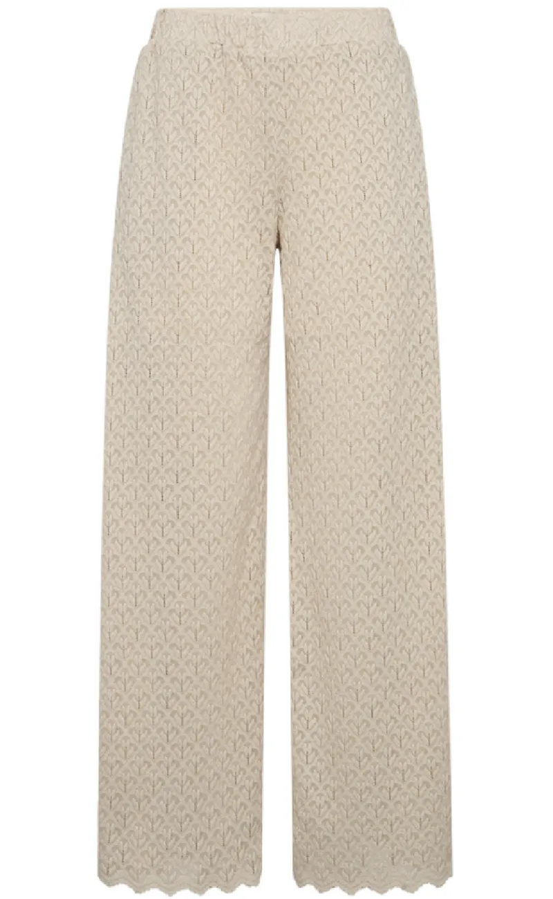 Beige bukser fra Freequent, i et flot print som er fremstillet i et let transperant materiale.