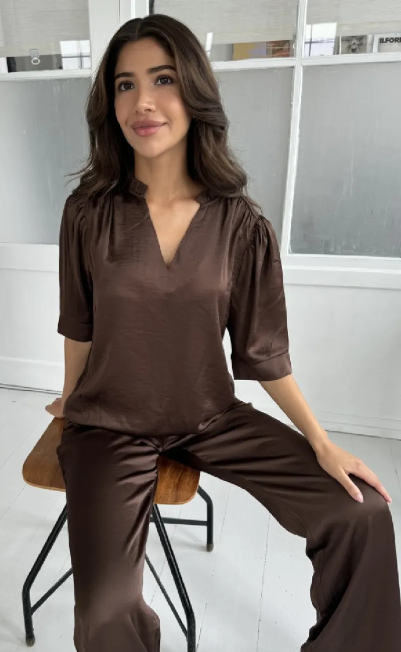 Lækre satin bukser fra Continue i brun.
