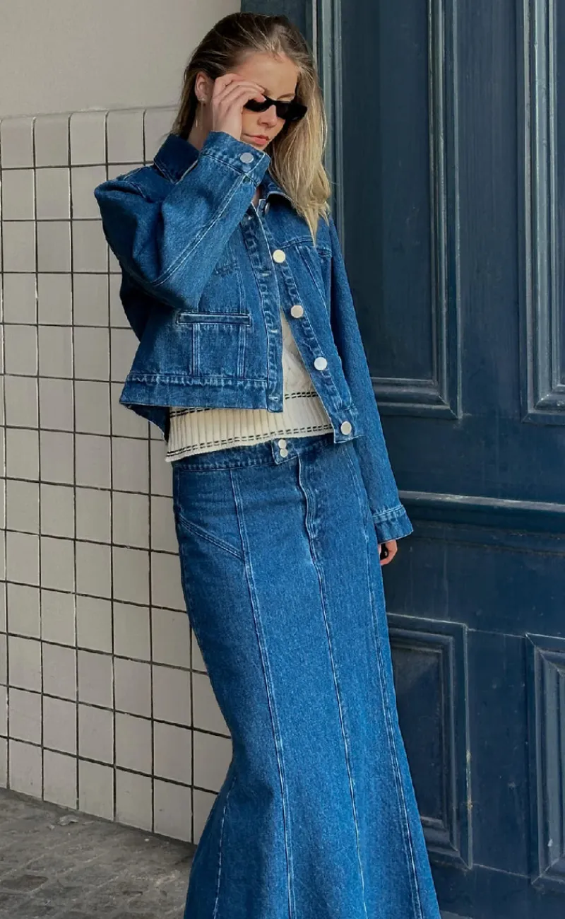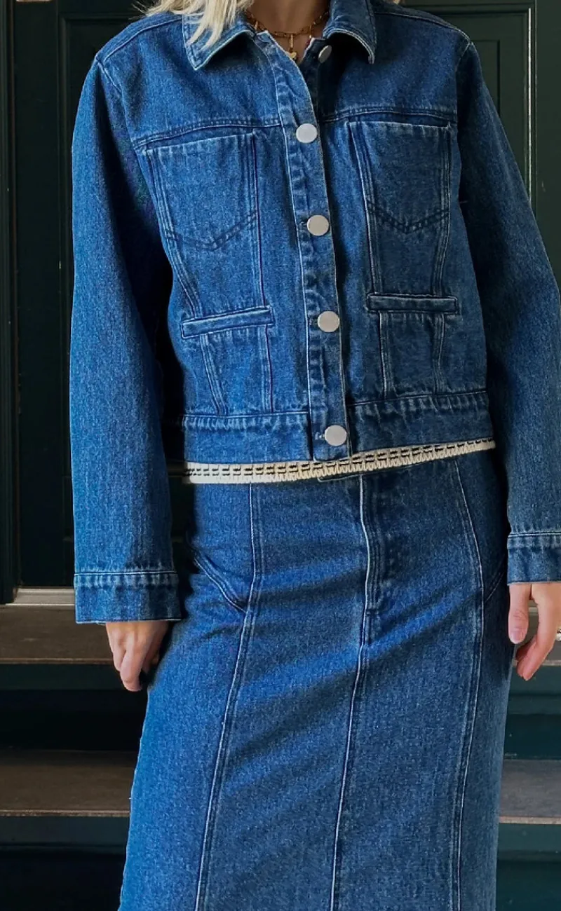Klassisk denim jakke fra Noella i blå, med unikke detaljer.