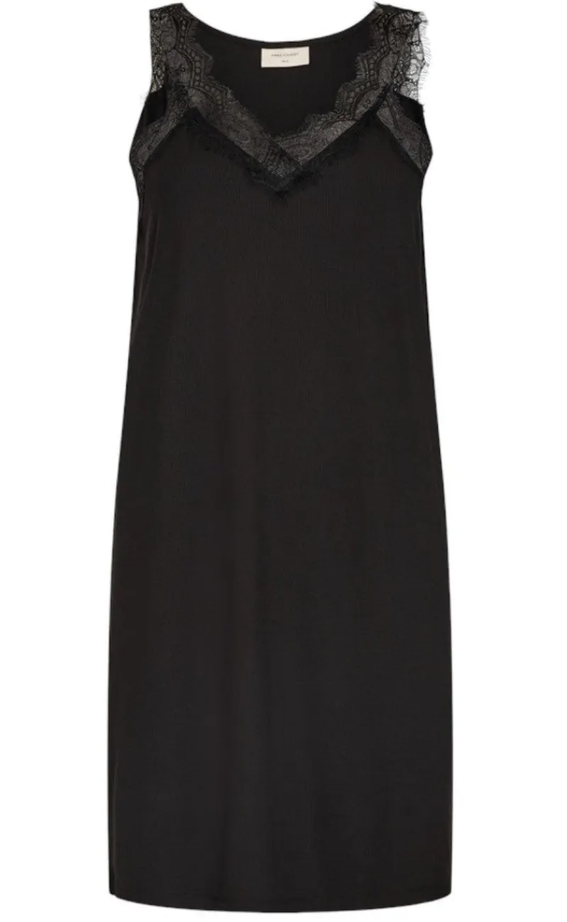 Flot kjole med blonder fra FreeQuent i sort, der er perfekt til basicgarderoben.