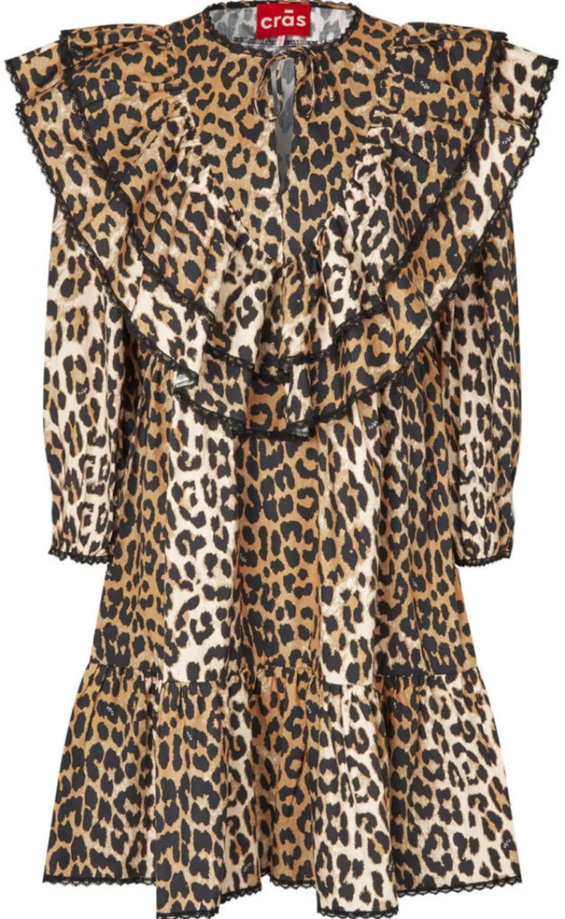 Voluminøs kjole fra Cras i et leopardprint.