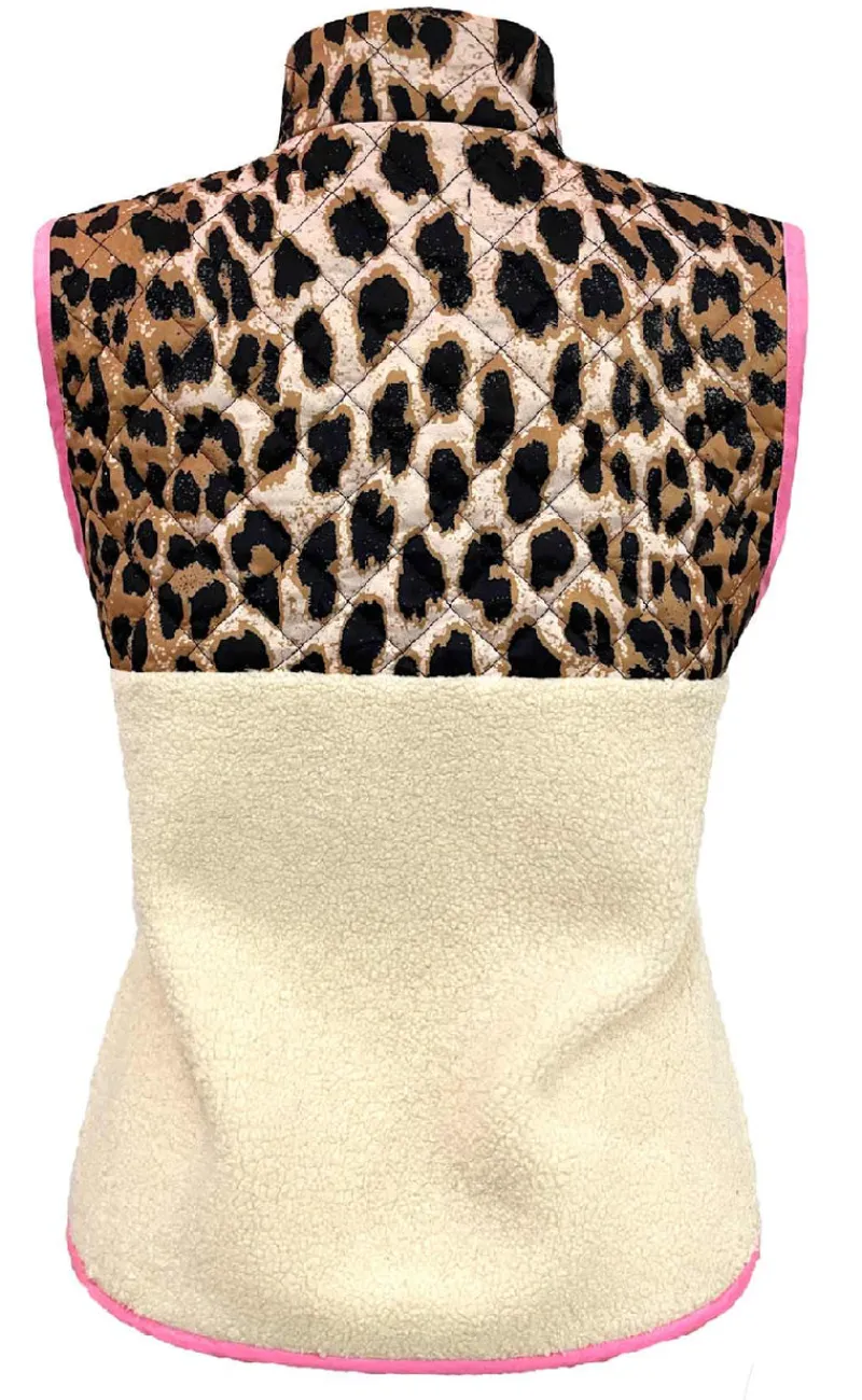 Teddo vest fra Liberte i beige, med leopardprint i toppen og lyserøde syninger.
