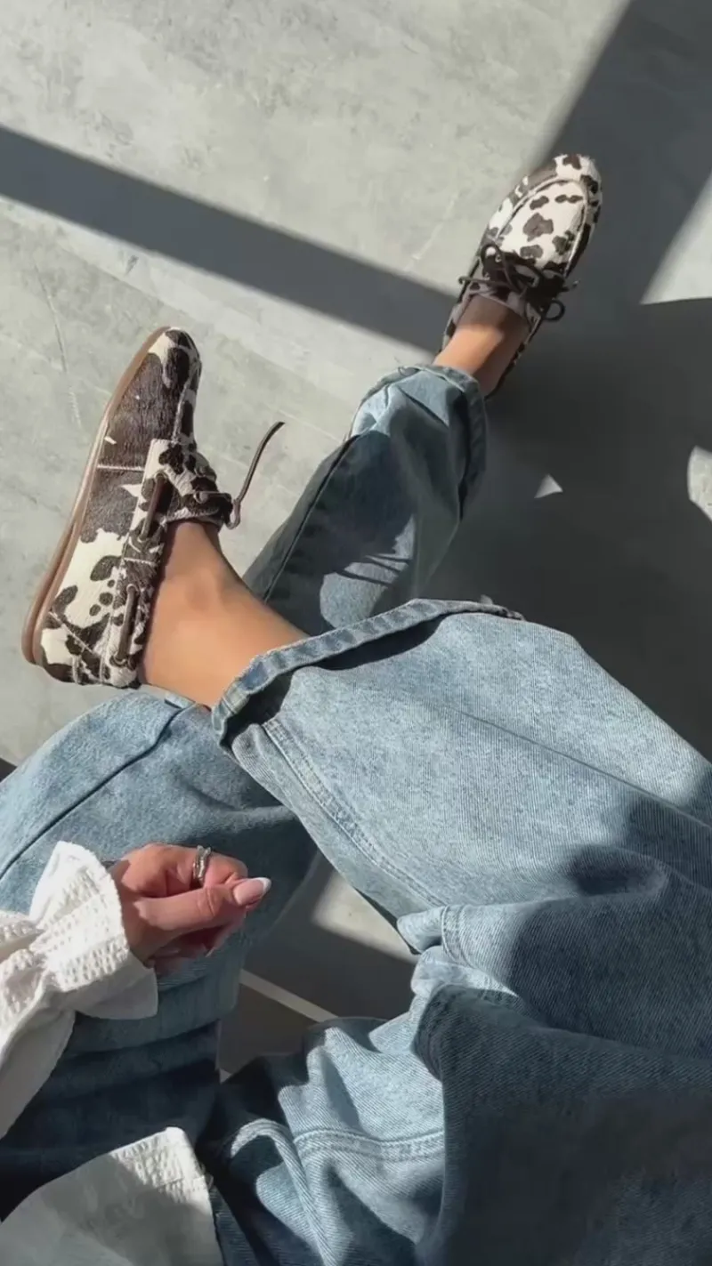Bløde og komfortable sailor-sko fra Copenhagen Shoes i et flot ko print.