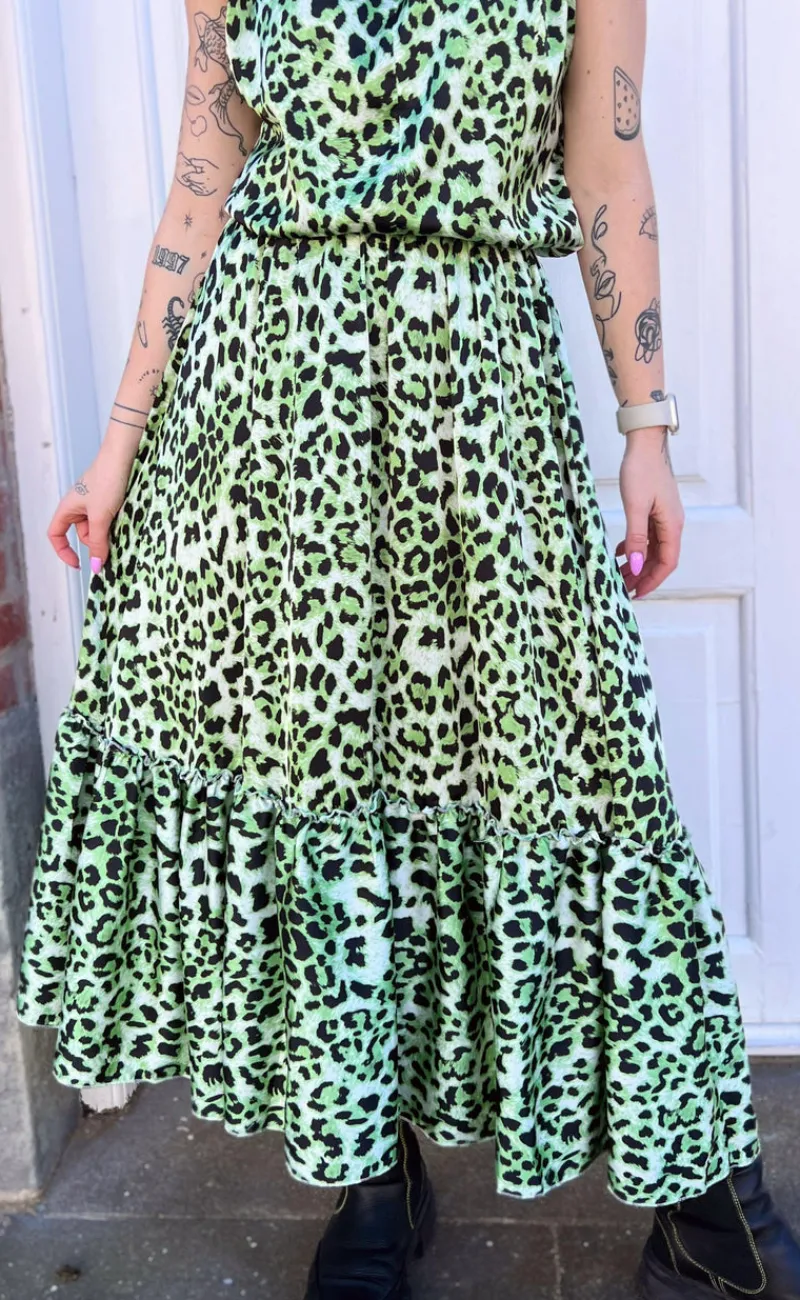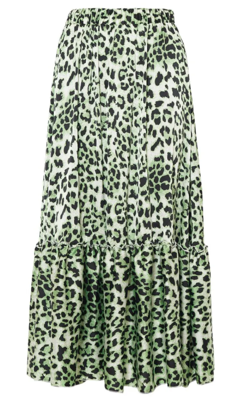 Elegant nederdel fra INA Copenhagen i et grønt leopardprint.