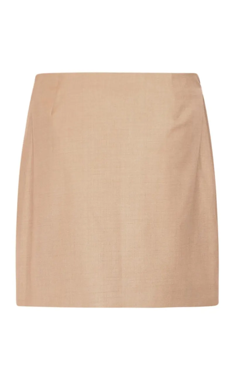 Fin og simpel nederdel i beige, med bindebånd i siden.