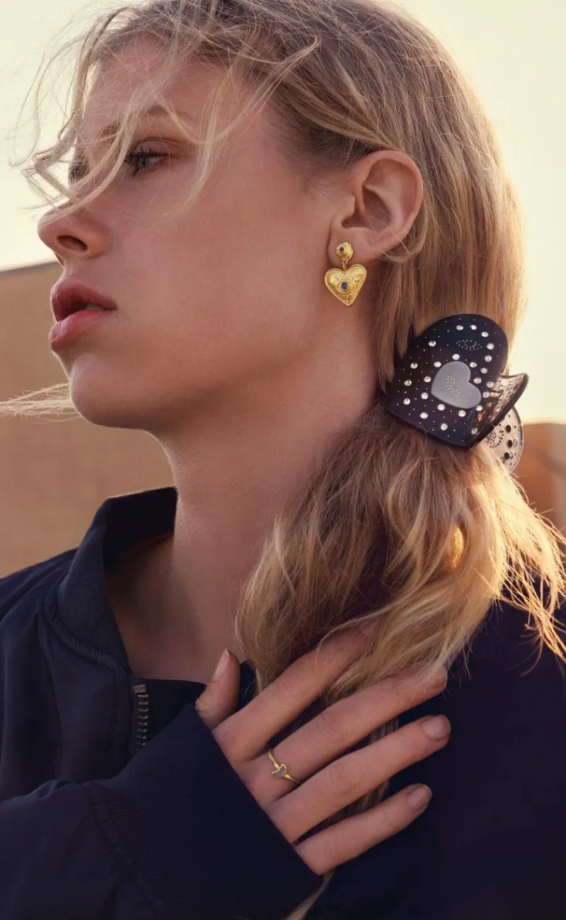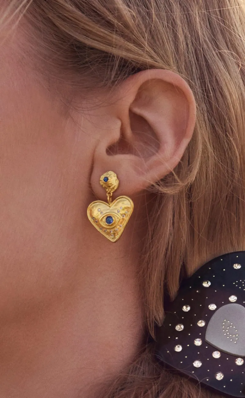 To skønne hjerte øreringe udsmykket med blå kyanit – fra Maanesten. Fyldt med kærlighed.
