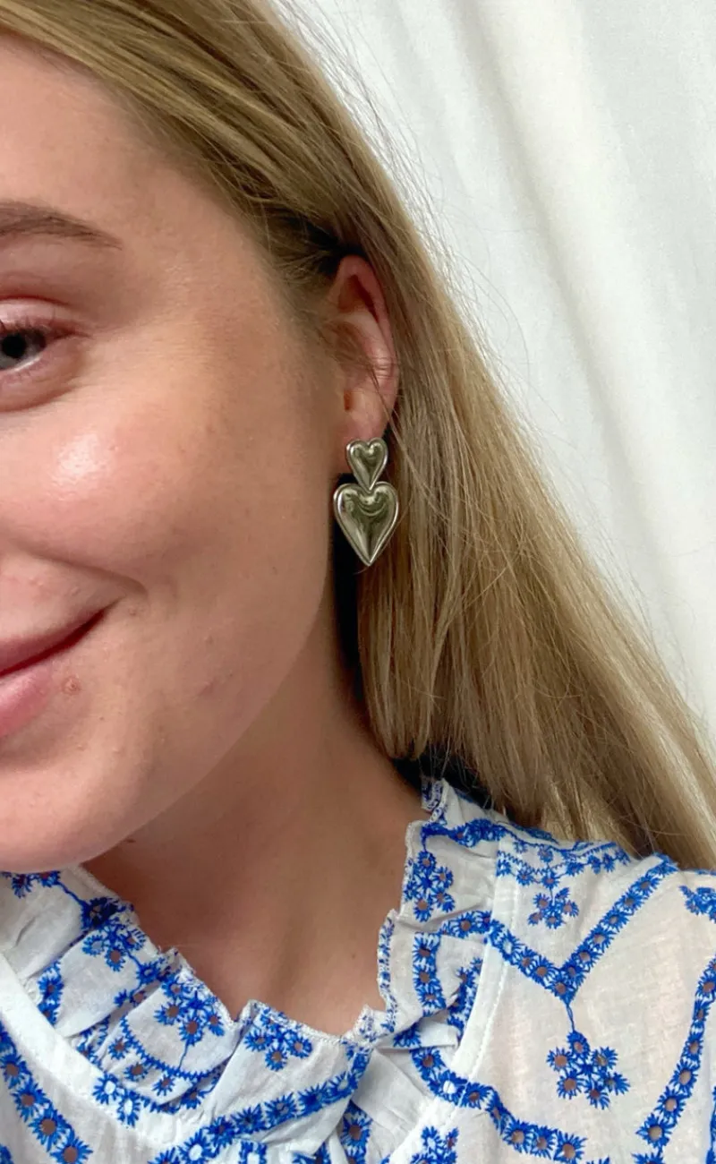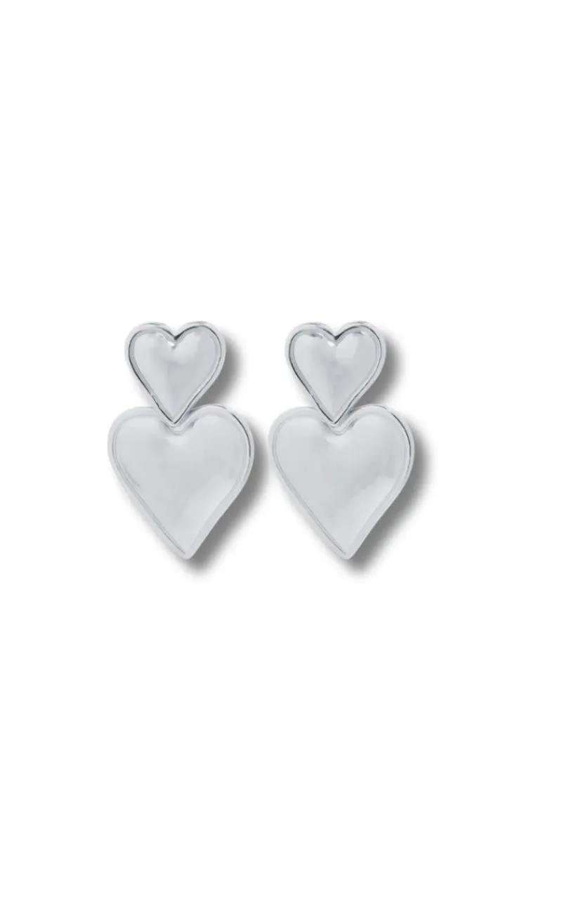 Populære øreringe fra Smykkeli Copenhagen med to hjerter i sølv. Øreringene har et eksklusivt udtryk og kan anvendes til enhver lejlighed!