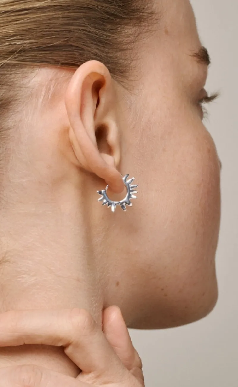 Søde hoops fra ENAMEL Copenhagen i sølv, formet som en sol.